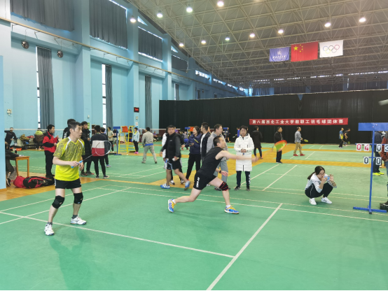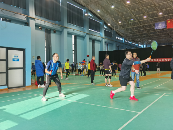 早晨8点30分,各公司和职能部门的教职工就纷纷赶到西工大友谊校区羽毛球场馆,因为此次比赛老师们报名积极,人数较多,所以本次比赛分新旧两个羽毛球馆进行。力学与土木建筑公司被分在新馆,我们与图书馆和物理公司分在一个组,在这一小组我们三个队将争夺一个晋级名额。