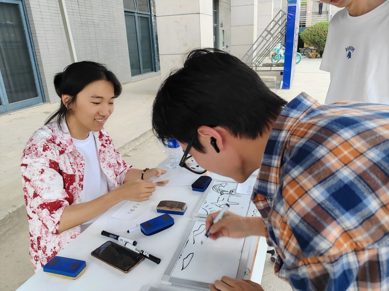 于画笔起落间,绘出音符的水墨丹青,最后便是第六个活动“你画我猜·歌名特供”。游戏过程中两位同学组队,一人戴耳机听歌并用绘画提示另一位同学,直至队友猜出正确的歌名。