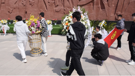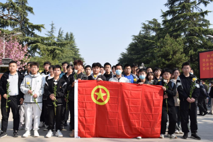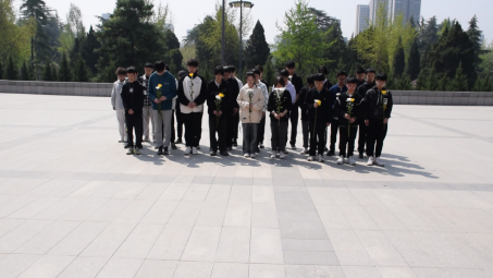 清晨,同学们乘车来到西安烈士陵园,怀着对革命先烈们无比的敬意和无限的哀思,在庄严肃穆的“革命烈士纪念碑”前,举行了简短而又隆重的悼念仪式。由团支书王浩杰同学主持,团员们向烈士默哀一分钟,并为革命烈士敬献花篮与挽联,表示对革命先烈的沉痛悼念和敬仰。随后,由班长马成博同学带领大家重温入团誓词。