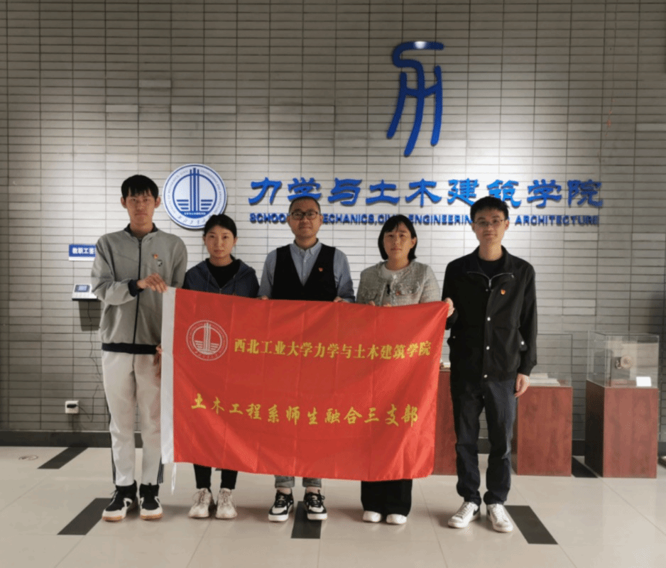 图片中从左至右依次为:丁斌(组织委员)、李娇(宣传委员)、龙旭(支部书记)、侯秀慧(纪检委员)、陶凯(支部副书记)