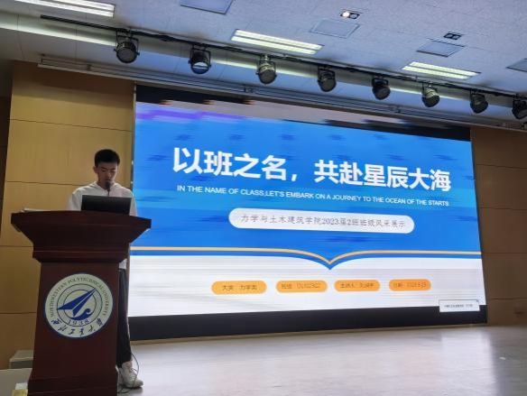 本次班级风采展示活动中,力学五个班级和建筑学班级集思广益,按照活动主题精心制作了PPT和班级风采视频。活动开始前,各班班长均已通过抽签形式确定了班级展示顺序。活动过程中,在PPT展示环节,各班都展示了自己班级的班主任和同学们共同制定的班规、班训、班歌,同学们自己设计的班徽、班服、班旗,以及各班级班会活动和团建活动的照片。而在班级风采视频中,则更多地展示了同学们的学习以及生活,虽然大家从相识之日到今天,仅仅只有一个月的时间,但大家都用自己的真挚热忱打动了身边的同学,成为了亲密无间的朋友,大家一起学习、游戏,在笑与泪中互相帮助、彼此相依。同时,各班都展示了精心准备的节目,不仅有班歌展示,还有诗朗诵、情景剧等多种表演形式,展现了大家朝气蓬勃的老员工活。