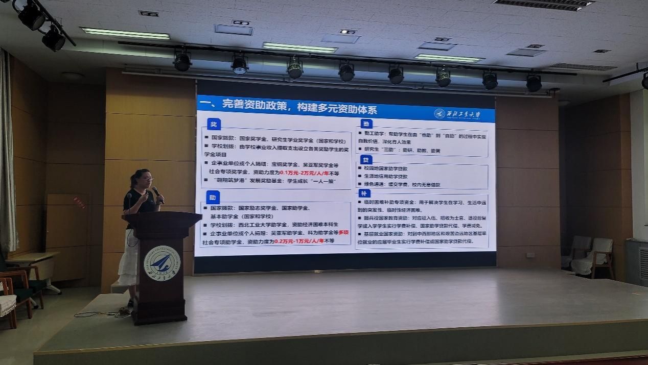 施老师细致生动的讲解和耐心的答疑解惑,让同学们对于西工大奖助学金申请条件以及奖助学金金额等都有了深刻了解。
