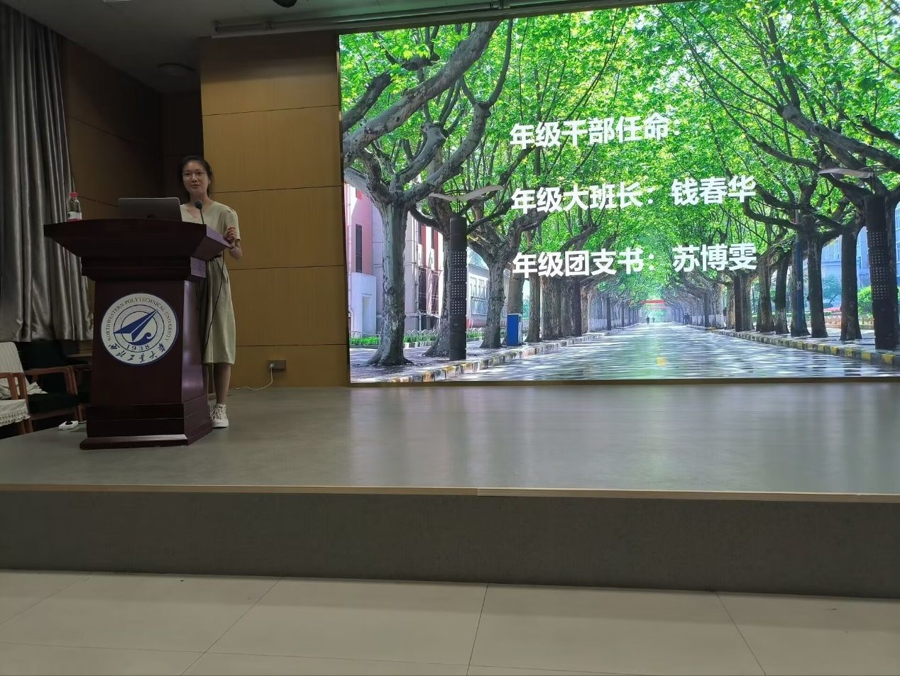 最后,力学与土木建筑公司2023级本科年级大班长钱春华和年级团支书苏博雯向同学们进行自我介绍,并承诺未来必将踏实做事,积极与老师、同学们沟通,热情为每一位同学服务,他们表示会在日后的工作中自觉接受大家监督并不断改正自身缺点,和同学们一起进步,为构建一个积极向上、有朝气的公司而共同努力!