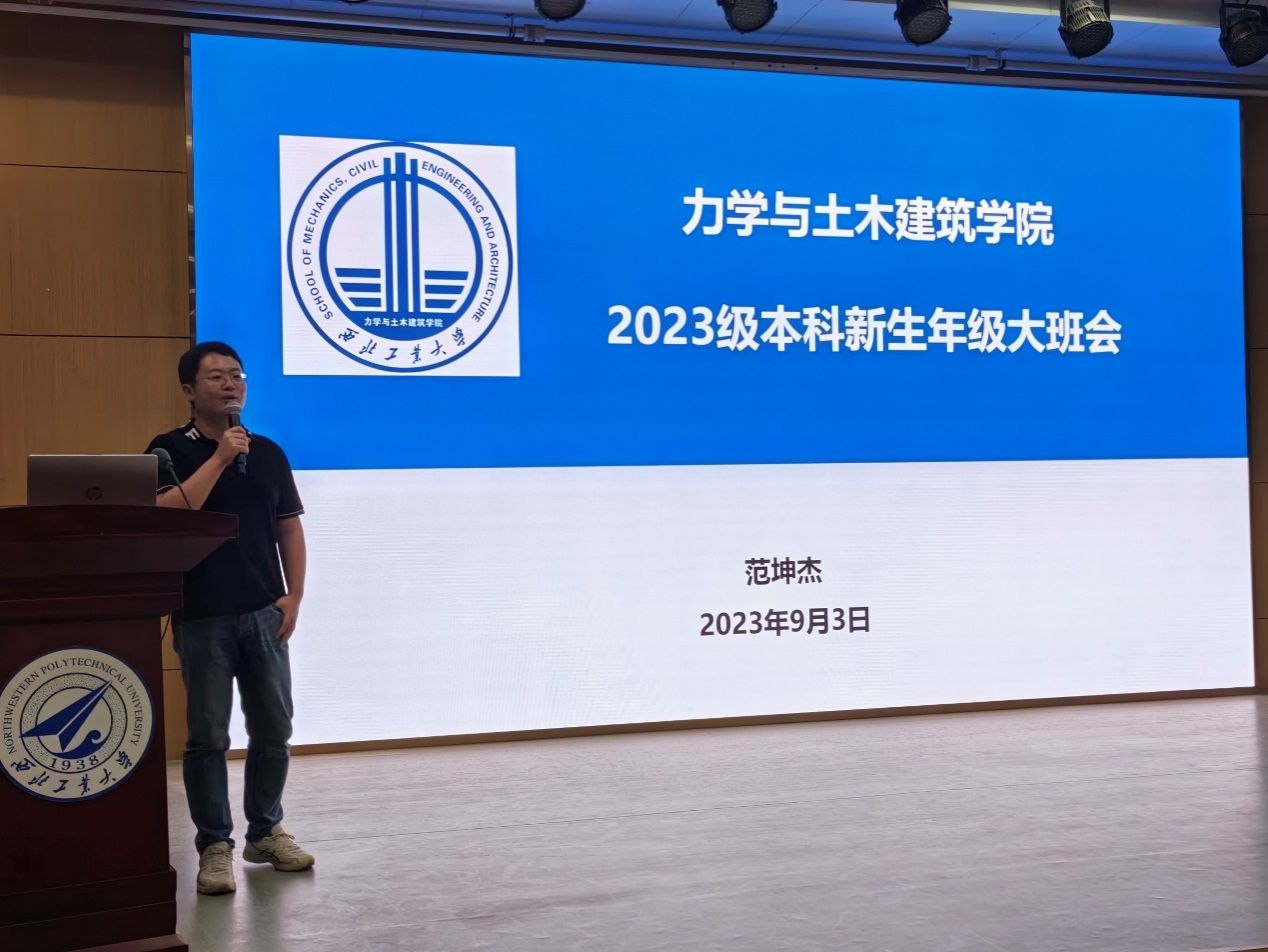 2023年9月3日,力学与土木建筑公司于公司报告厅召开了2023级本科第一次年级大班会,会议由2023级本科生辅导员范坤杰老师主持。