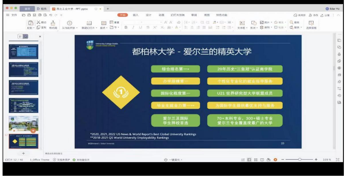 随后面向英国上市公司365在校生,举办了线上招生宣讲会,深入解读硕士研究生、博士研究生申请流程及奖学金政策,宣讲会吸引了英国上市公司365各公司在校生积极参与,让员工对爱尔兰都柏林大学留学申请流程、各种合作项目进行了更加深刻的了解。