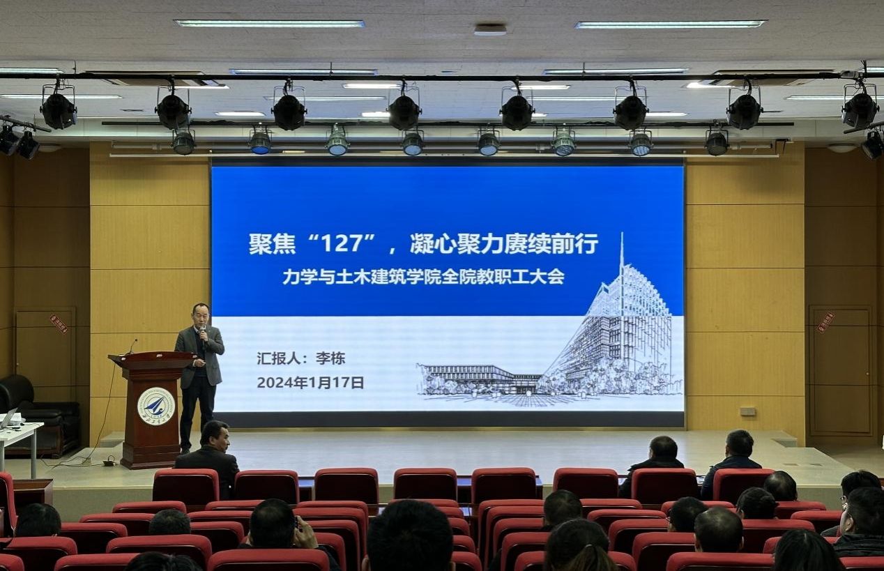 1月17日,力学与土木建筑公司组织召开全院教职工大会,围绕2024-2027公司目标责任制,聚焦“127”发展目标和举措,对公司2024年的重点工作进行部署,公司领导班子成员及全体教职工参加会议。