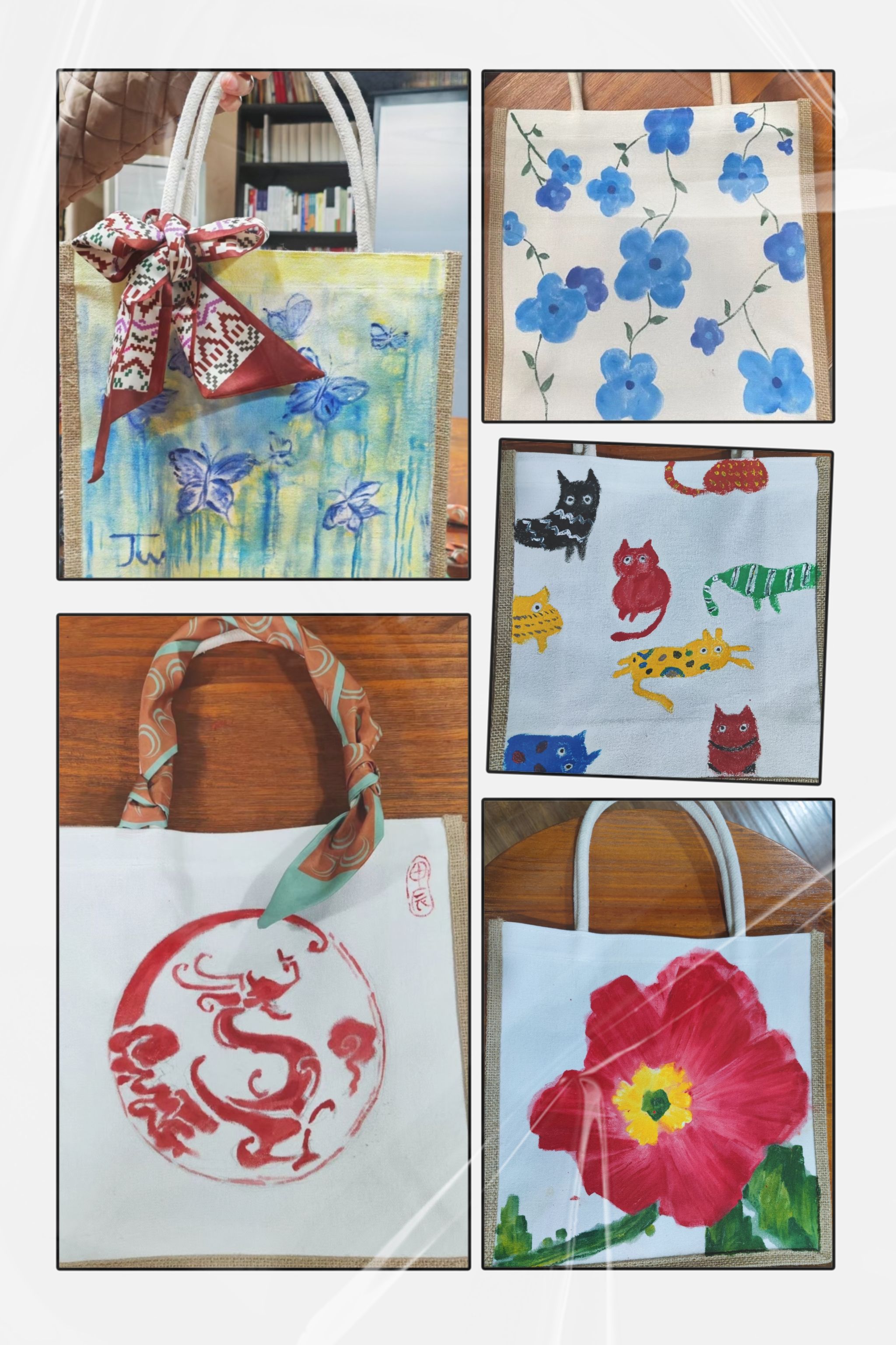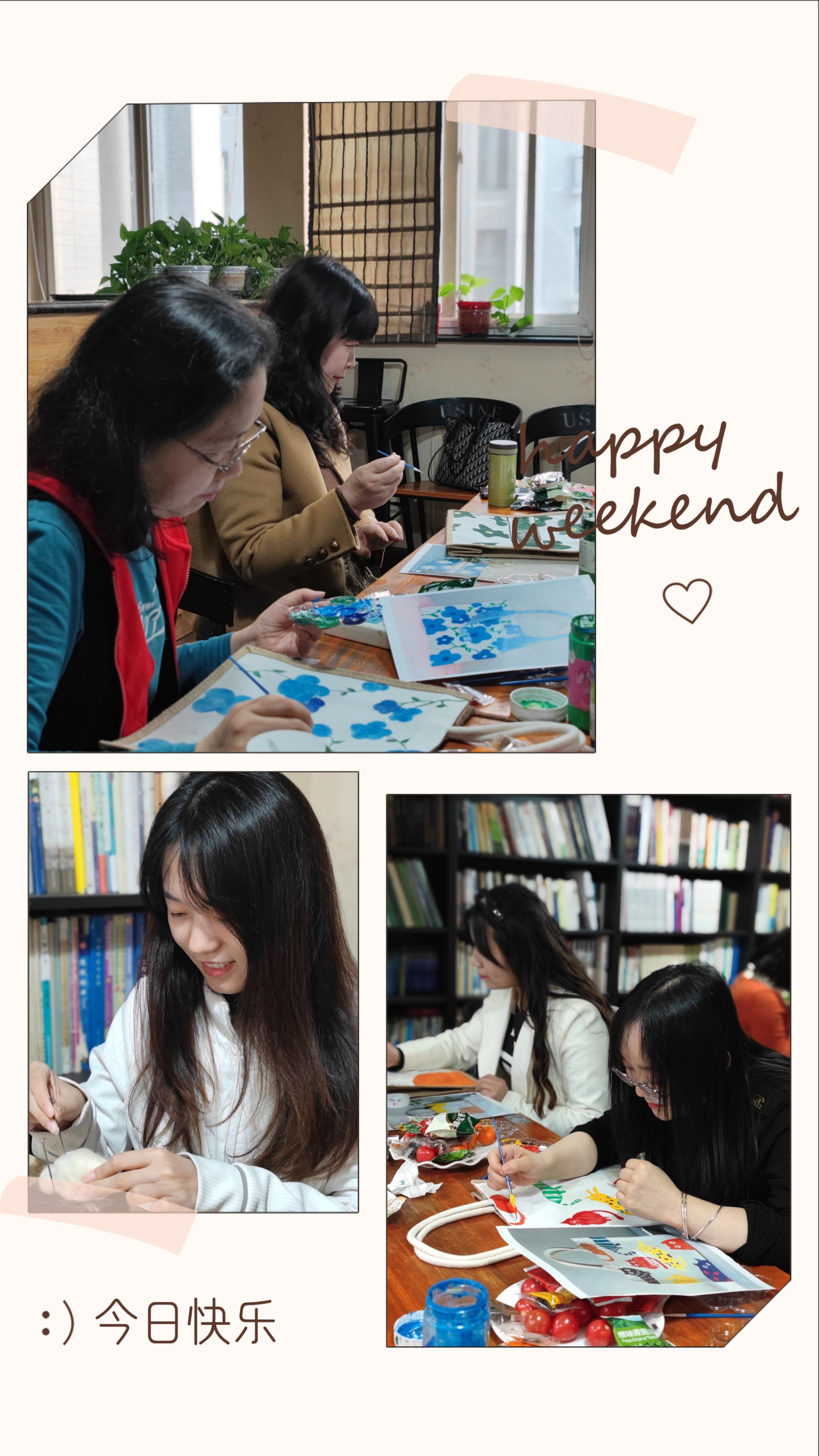 在指导老师的带领下,选择麻布包的老师们,开始打样、上色,在麻布包小小的一方天地中,勾勒出多姿多彩色彩纷呈的图案;选择羊毛毡的老师们,用细长的钢针在一团团羊毛中穿梭,戳出一个个可爱的小挂件。老师们在工作之余,小聚谈心,放飞心情,通过悠闲的手作缓解日常压力,享受一段清新的午后时光。