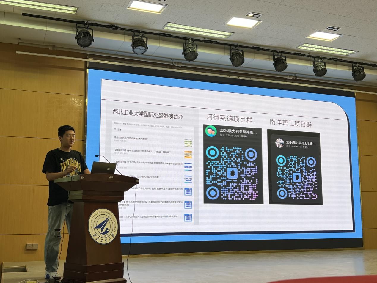 最后,经理助理龙旭分享了个人出国经验及心得体会,并着重介绍了公司和公司的相关经费支持政策、项目报名的流程以及一些出入境时的注意事项,提醒同学们要在规定的时间内完成项目的报名以及护照等相关资料的准备。在与同学们交流互动之后,他呼吁大家积极申报心仪的项目,积极走出舒适圈,迈向实践的前沿。在实践中学习、在挑战中成长,不断提升自己的综合素质。