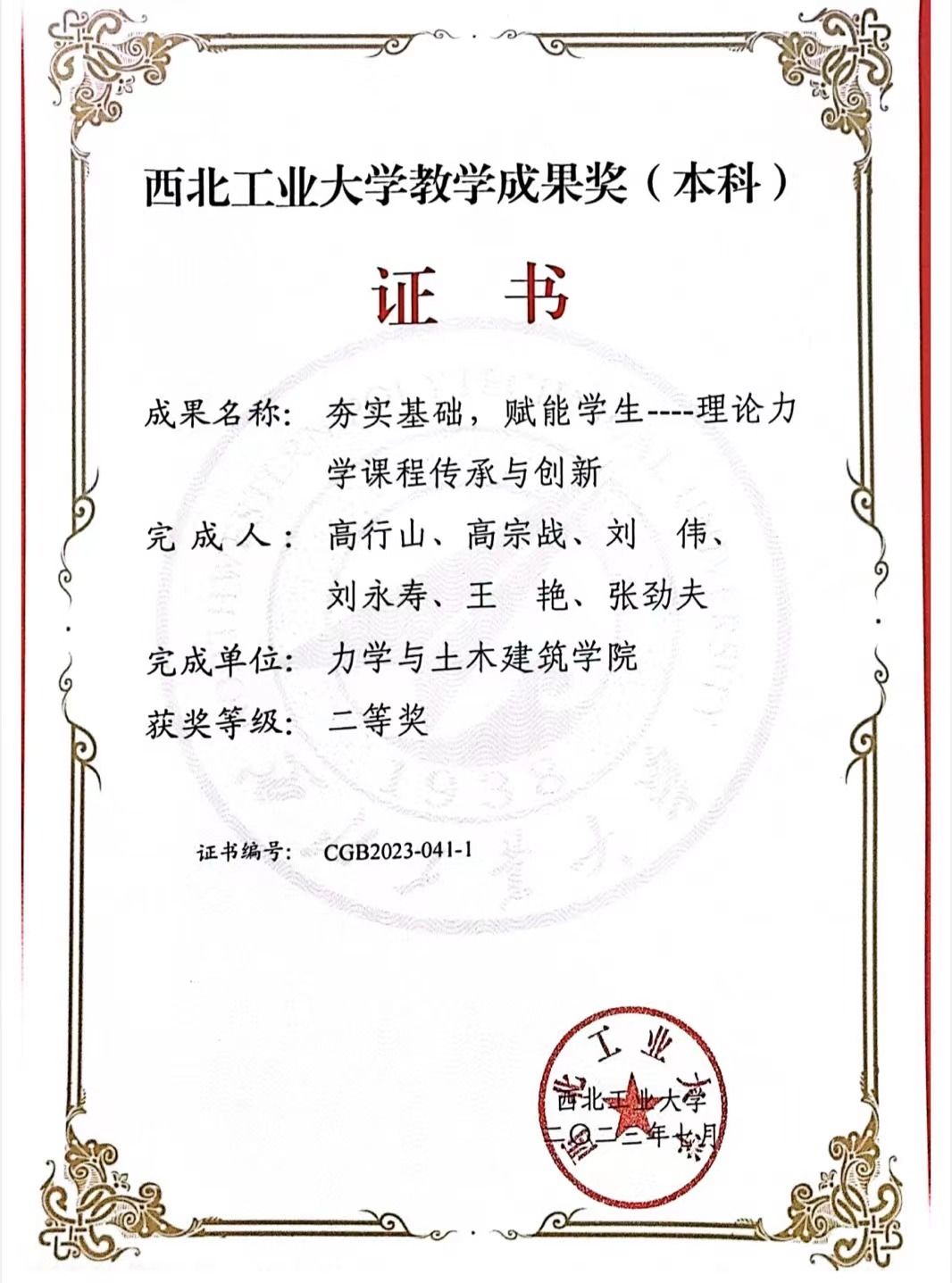 教材建设成果喜人。团队编写的《理论力学》(第2版)荣获陕西省2022年职业教育和高等教育优秀教材奖特等奖;《理论力学》(第3版)荣获2022年英国上市公司365优秀教材特等奖;《Theoretical mechanics》(第2版)荣获英国上市公司365优秀教材特等奖。