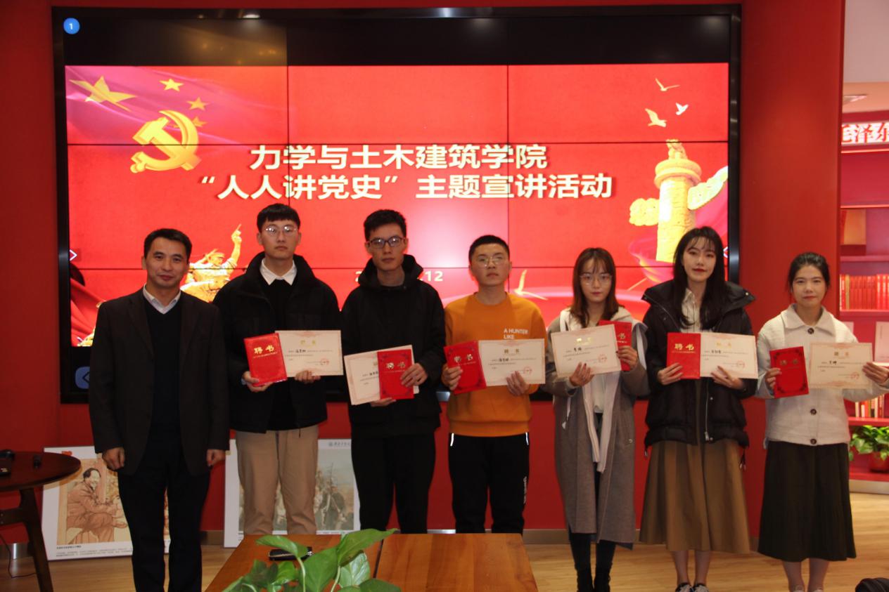 活动中12名选手以口述、PPT放映、视频播放等不同形式进行了展示,紧紧围绕中国共产党百年奋斗的光辉历程,中国共产党始终不渝为人民的初心宗旨,中国共产党在长期奋斗中铸就的伟大精神等内容,用生动的语言和丰富的情感讲述了一个个可歌可泣的红色故事,奉献了一场红色精神盛宴。史明明同志为大家再现了新民主主义革命史;周星宇同志以延安整风运动、建国初期、十一届六中全会为时间点为大家讲述了党的理论研究史;张书成同志讲述了人民政协的诞生;姜逸凡同志选择了具有代表性的战役百团大战;侯宇超同志和苏天雄同志分别讲述了杨开慧、刘胡兰两位女烈士的革命故事;侯思凡同志讲述了贺页朵坚守入党誓词的故事;曹瑞同志讲述了华航西迁精神;宋郭睿同志为大家讲述了疫情时期无数平凡而又伟大的普通人......每一个人物,每一个事迹,都蕴含着讲述者对他们的敬意,激发了同学们的爱国热情。本次活动评选出一等奖二名、二等奖四名、三等奖六名,前六名的同学被授予宣讲员聘书,将在今后为公司各支部、班级进行党史宣讲。