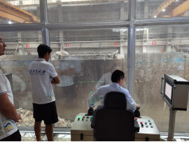 队员们在参观中了解到,光大环保能源(蓝田)有限公司是当地垃圾处理的最后一站。经前端分类后的其他垃圾被集中运送至这里,先经过发酵处理,再将垃圾进行焚烧发电。解说员自豪的告诉实践队队员:整条生产线涉及的核心技术均为自主研发且技术工艺先进,而且发酵室设置为负压,气体不易外溢。难怪队员们在厂区闻不到任何异味!