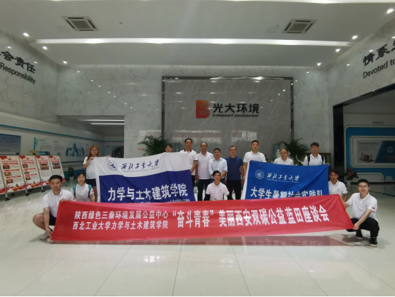 当日上午,实践队在蓝田县新茂商场四楼会议室,同蓝田县生活垃圾分类中心副主任杨永红、蓝田县城市管理和综合执法局工会主席贺银虎与宣传科科长薛永峰以及陕西绿色三秦环境发展公益中心秘书长李军、陕绿中心项目部负责人罗鑫、新茂商场总监卢辉和崔立博,开展了“美丽西安,双碳公益”主题座谈会。