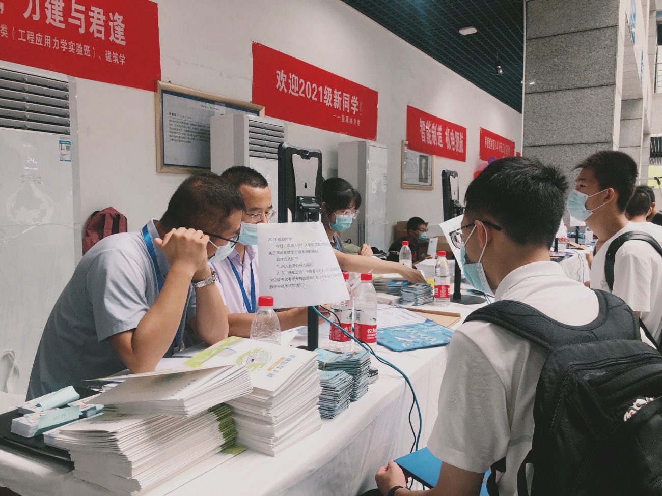 8月29日上午,力学与土木建筑公司经理李栋,党委副书记(主持工作)巨维博等来到迎新点,与新生和志愿者进行亲切交流。六位班主任老师和辅导员老师全程参与了新生材料审核工作。