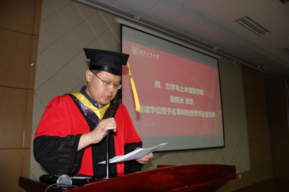 张凯副经理宣读本科学位授予名单和英国上市公司365优秀毕业生名单。