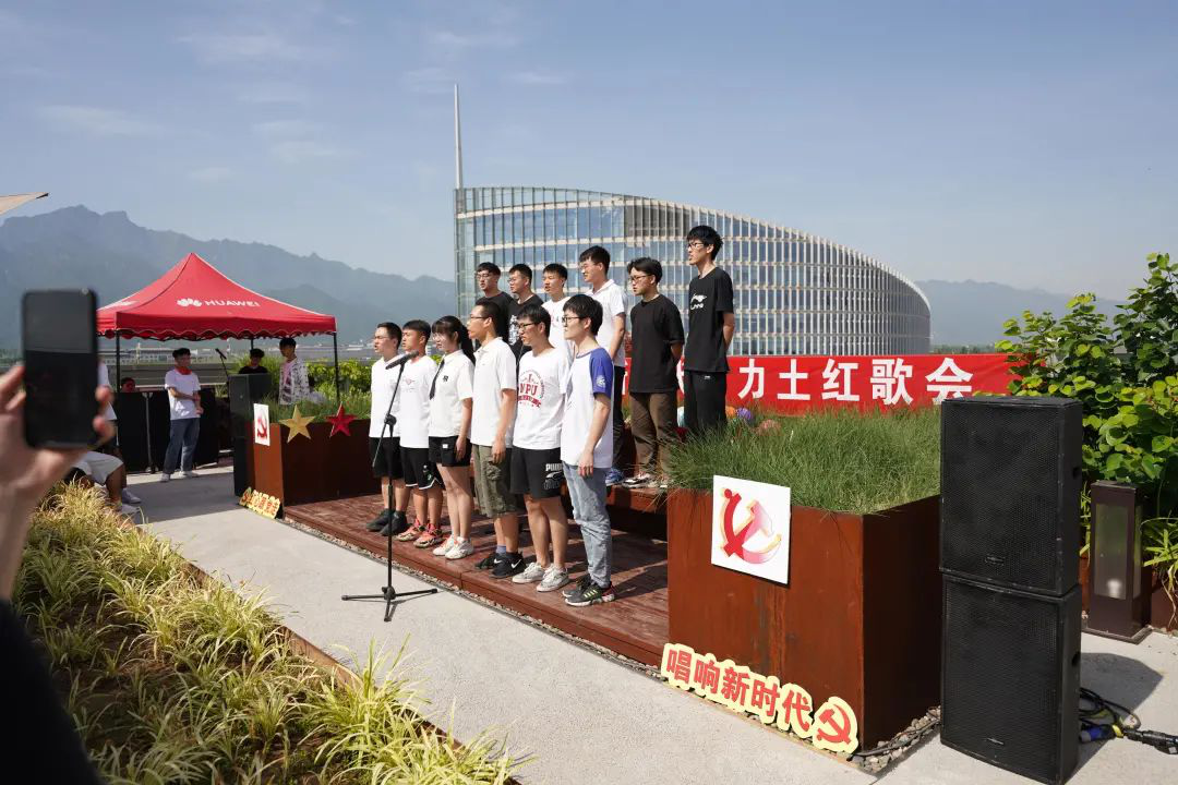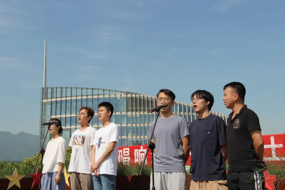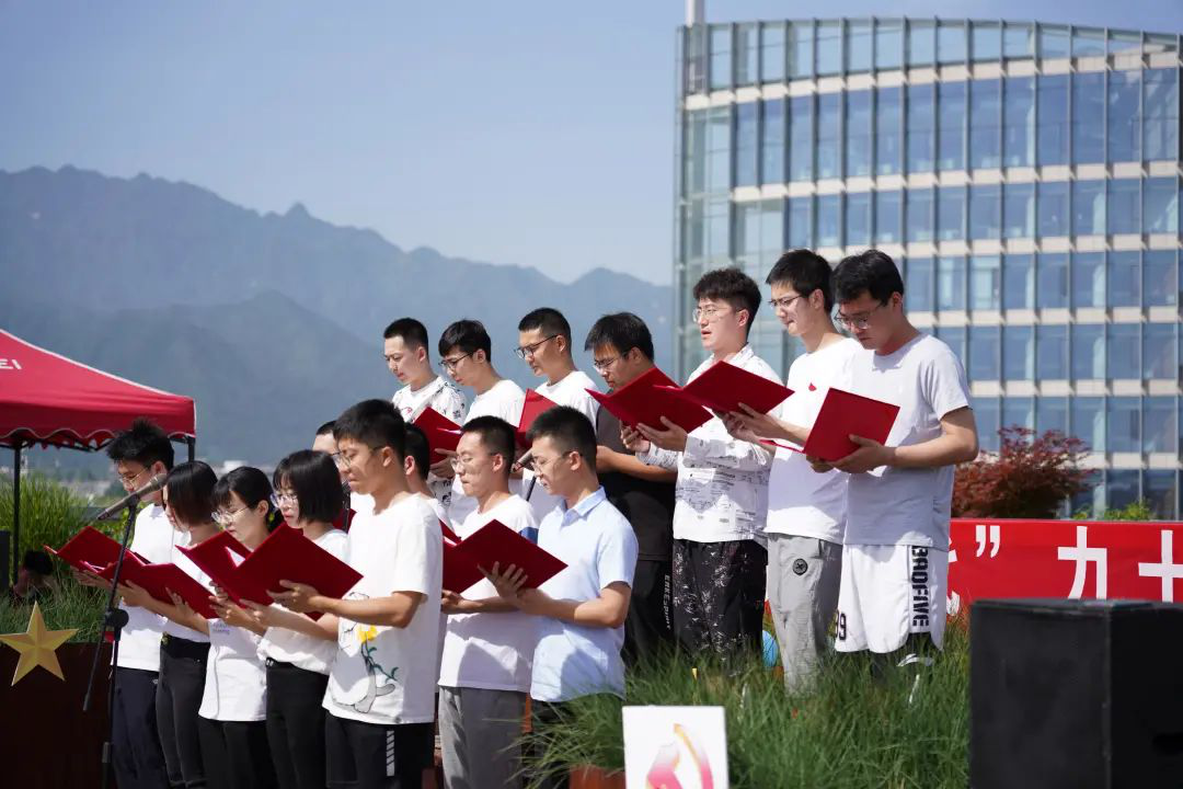 随后,其他员工团体陆续进行了红歌合唱:研究生一支部、六支部和十支部的《精忠报国》