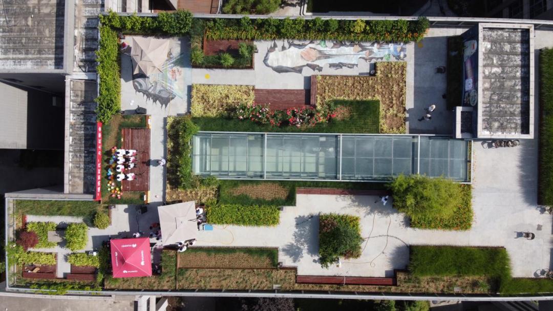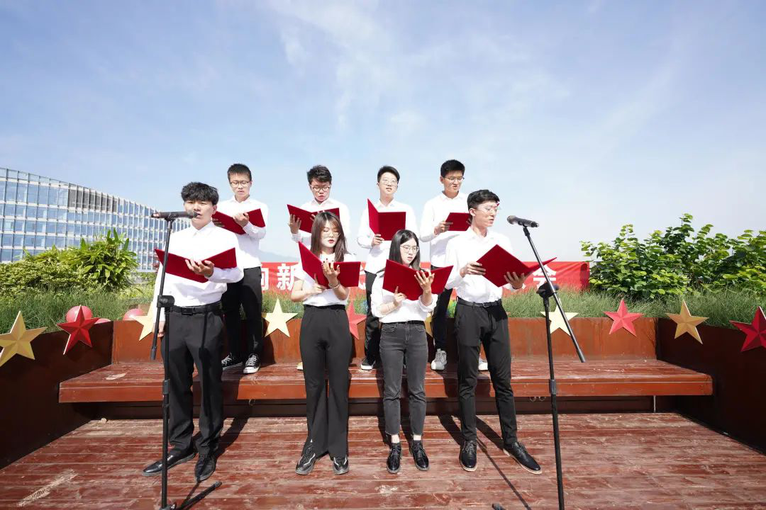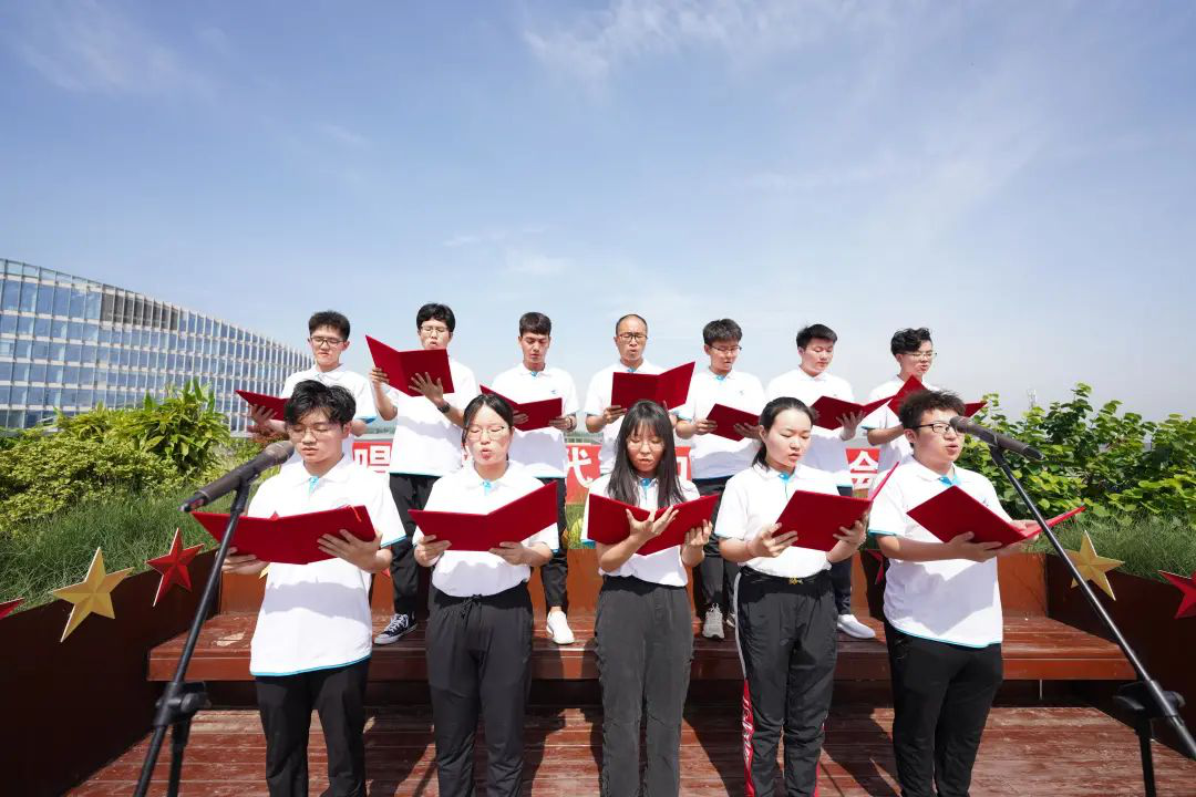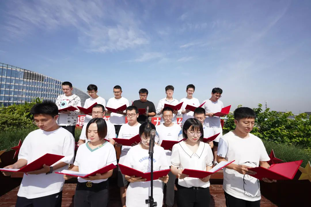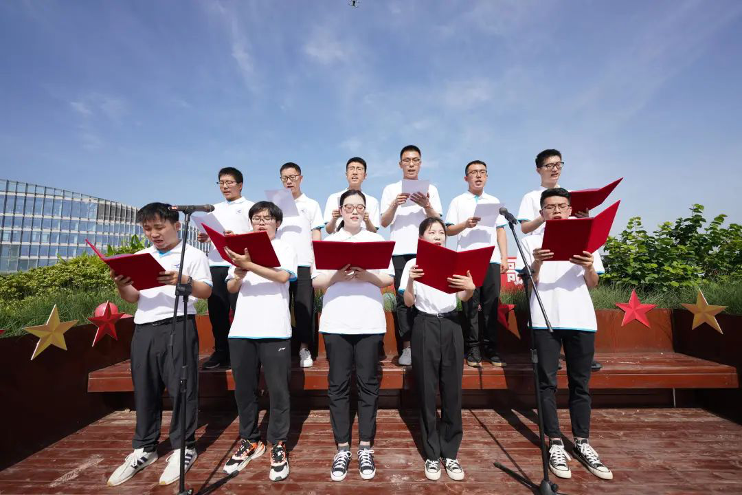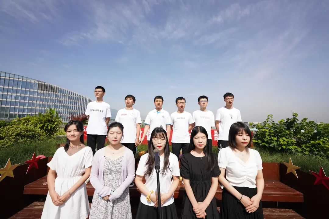 上午的公司天台阳光明媚,鲜花绿草簇拥着年轻的笑脸,同学们站在屋顶花园的舞台上,朝气蓬勃,活力四射,为伟大的中国共产党献上赞歌。同时,本次活动在B站上进行了全程直播,直播间里,气氛和谐,讨论热烈,收获了同学们的一致好评。