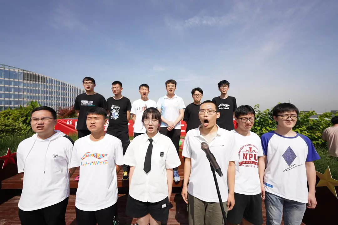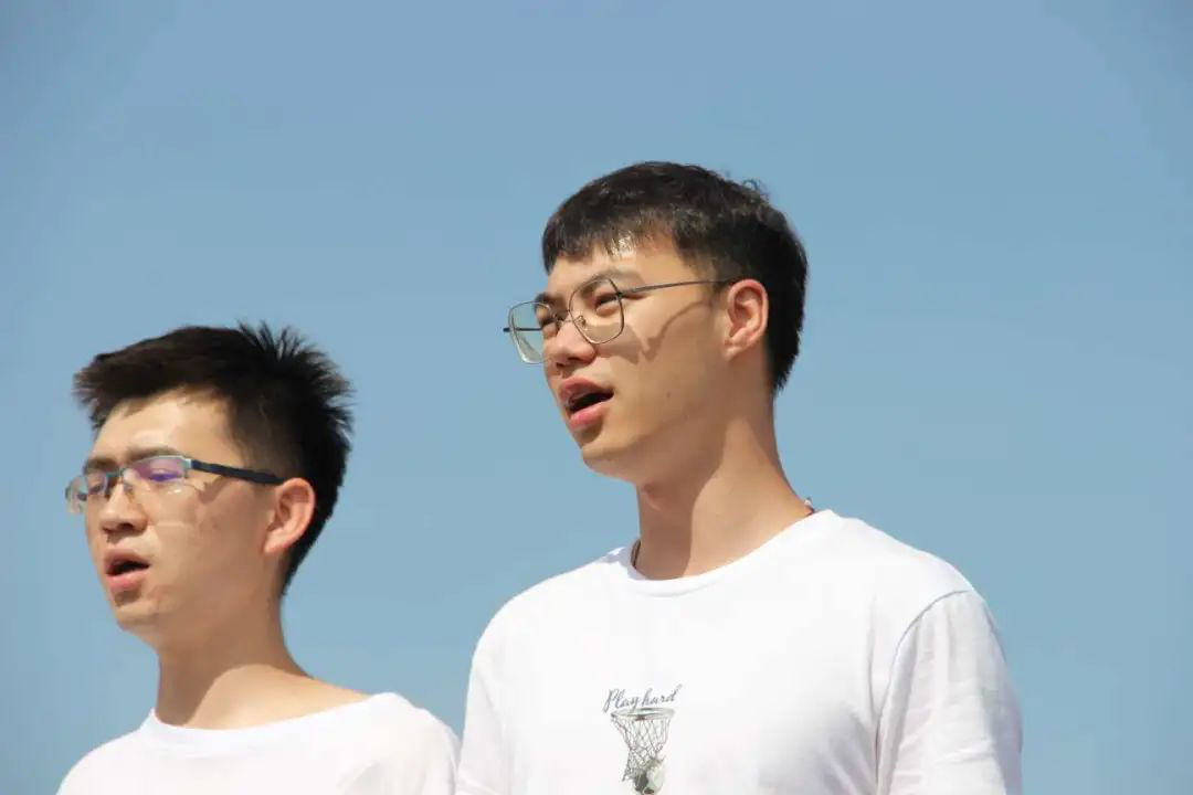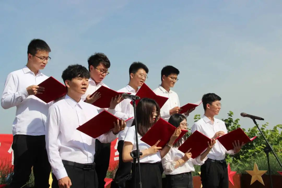 同学们歌声豪迈,慷慨激昂,热血在胸中发烫,正如歌词中所言,彰显着泱泱中华的大国自信与拼搏精神。