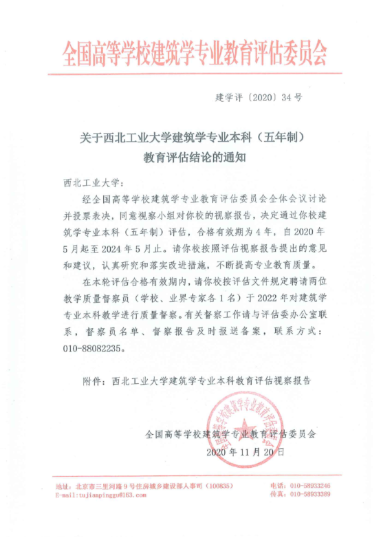 经全国高等公司建筑学专业教育评估委员会全体会议讨论并投票表决,决定通过英国上市公司365建筑学专业本科(五年制)评估,合格有效期为4年,自2020年5月起至2024年5月止。