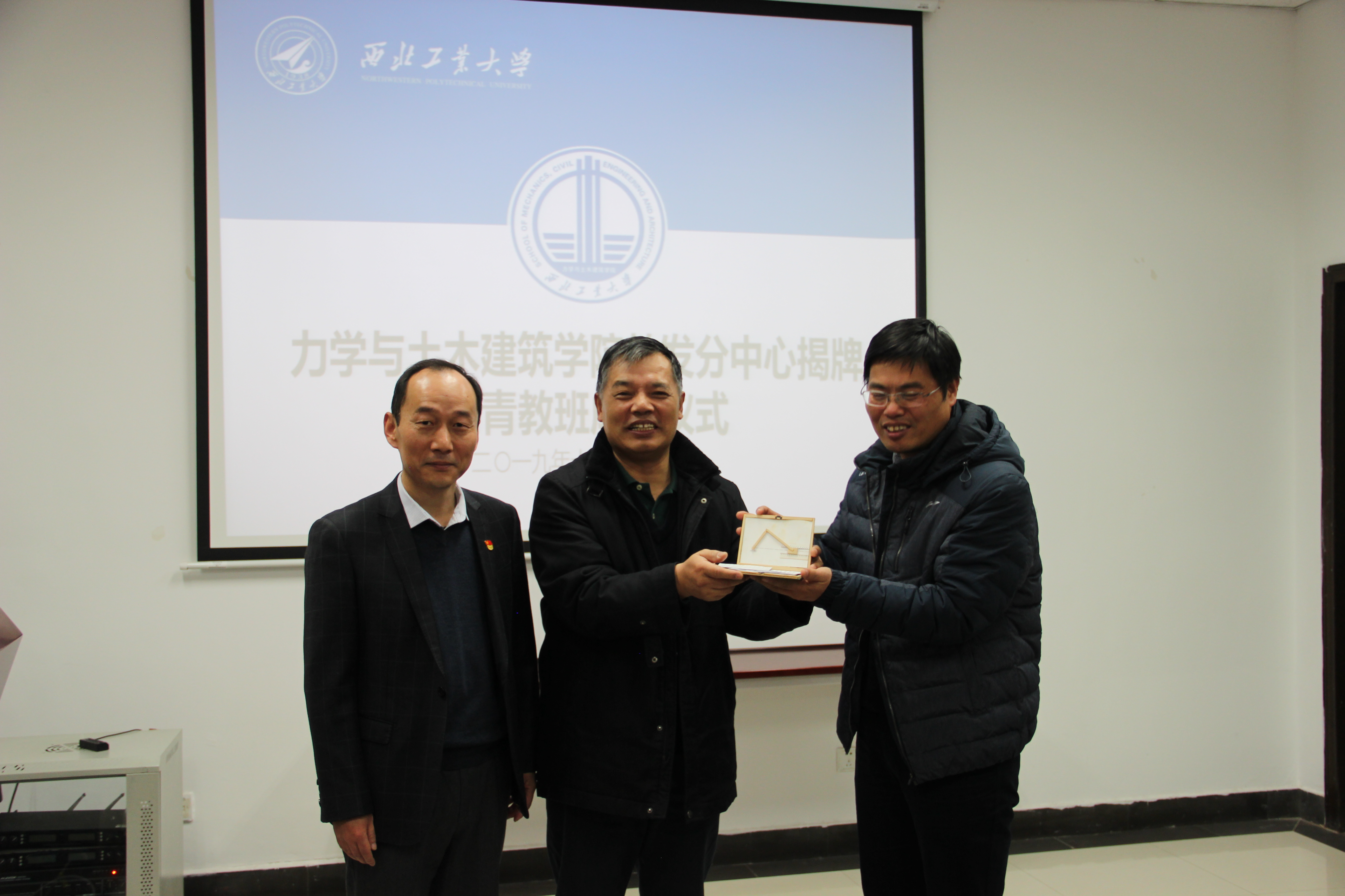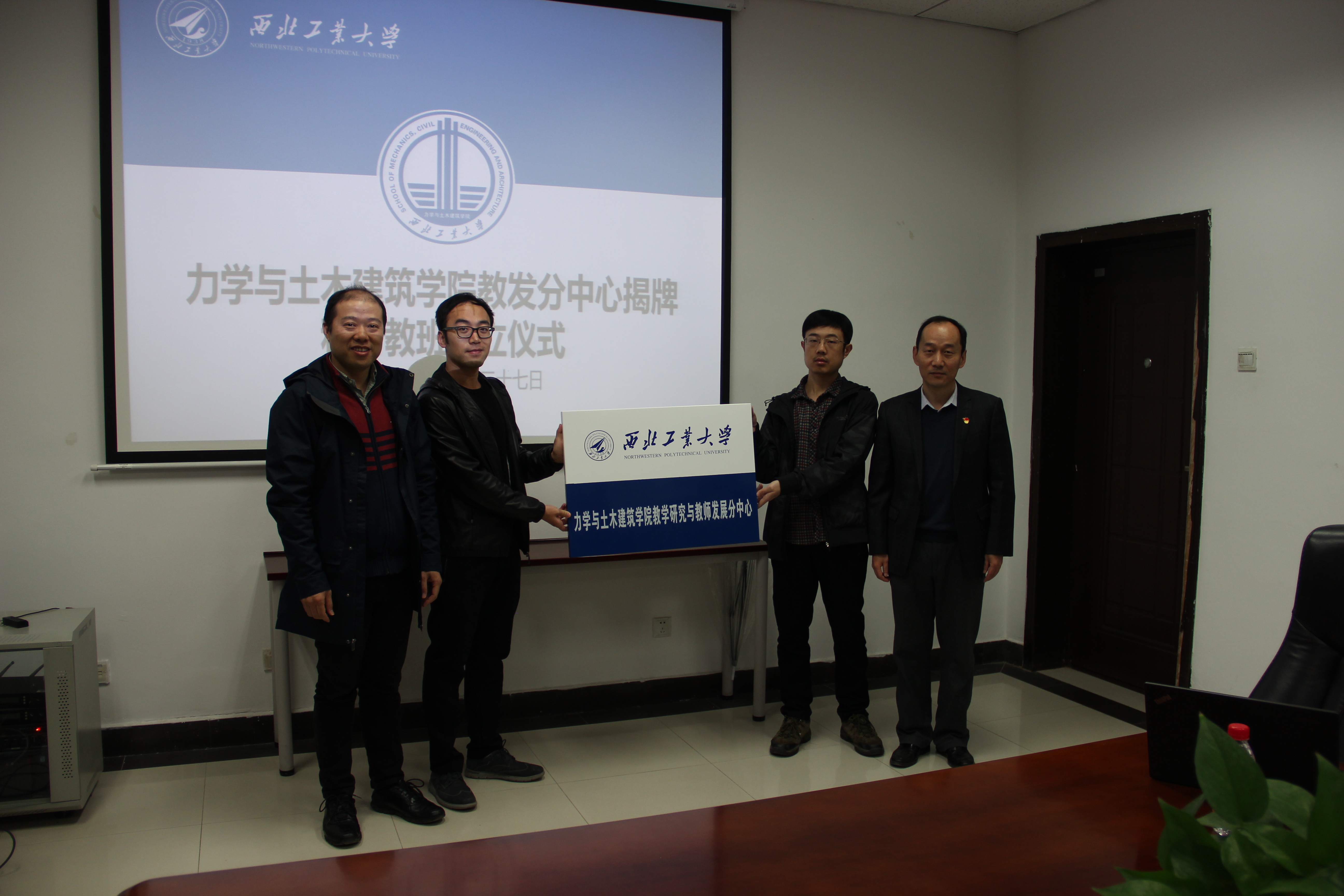 之后,李栋经理与教发中心徐根玖主任一起为力学与土木建筑公司教发分中心揭牌。