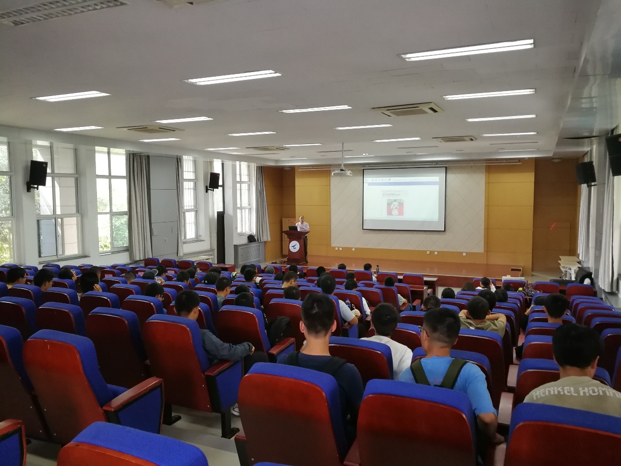刘小军老师从“我来讲什么”、“你们会收获什么”、“信息化平台怎样服务同学们生活和学习”、“信息化时代国外老员工成才的启示”四个方面给同学们详细介绍了信息化的特点、优势,并进行了生动的交流。
