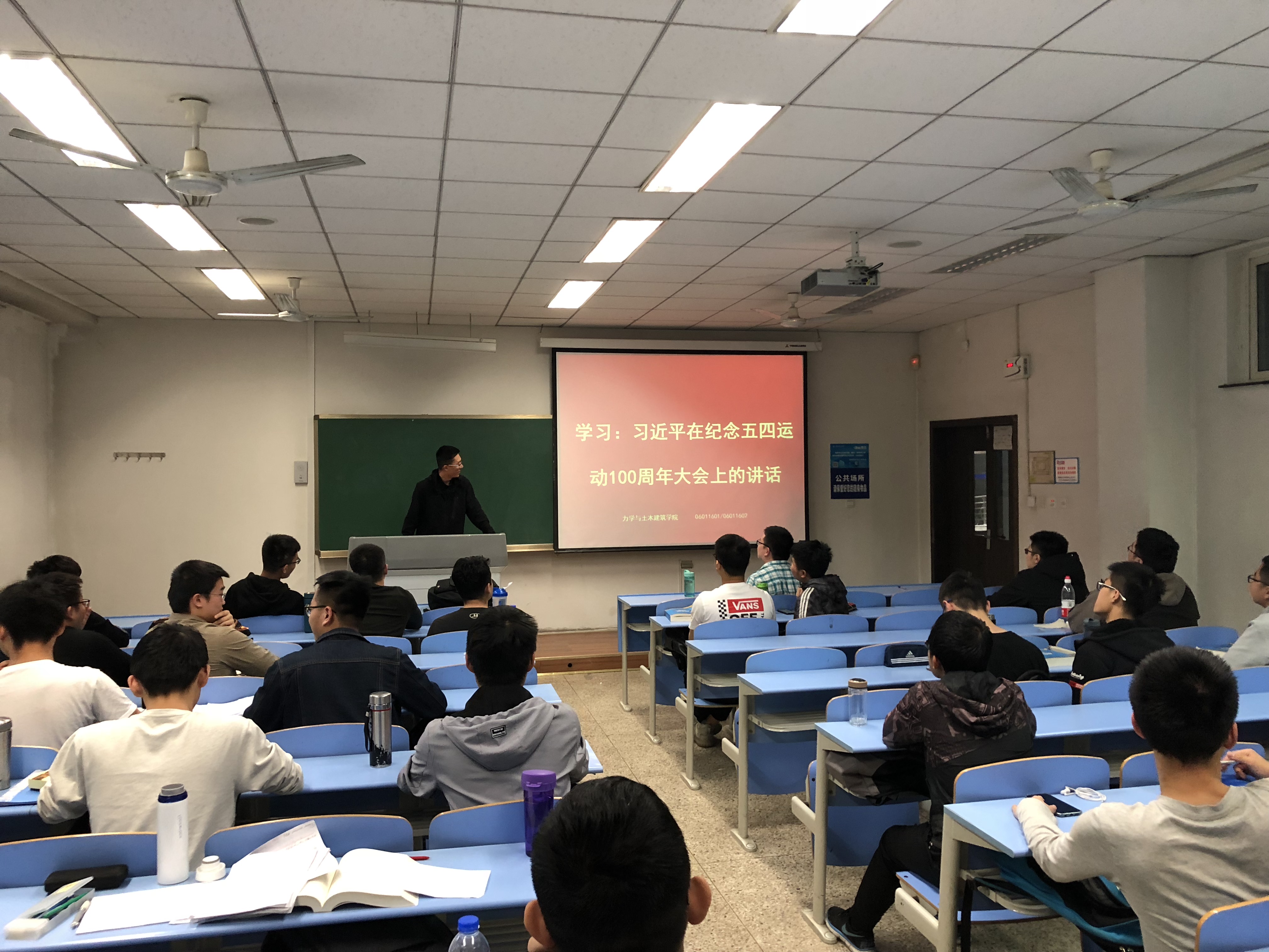 4月30日上午10点30分,纪念五四运动一百周年大会在京举行,习近平总书记出席大会并发表重要讲话。上午10点,按照公司统一安排,力学与土木建筑公司组织承办了员工观看纪念五四运动一百周年大会的活动,来自全校近200名同学观看了大会现场直播。下午,公司各班级还利用班会、团日活动等形式组织学习习近平总书记重要讲话精神。