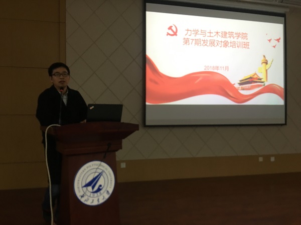 力学与土木建筑公司第7期发展对象培训班于11月7日下午4点在公司报告厅正式开课。本次课程的主讲老师是公司本科生辅导员侯恬,公司全体发展对象参加培训,培训由辅导员牛茂贵主持。