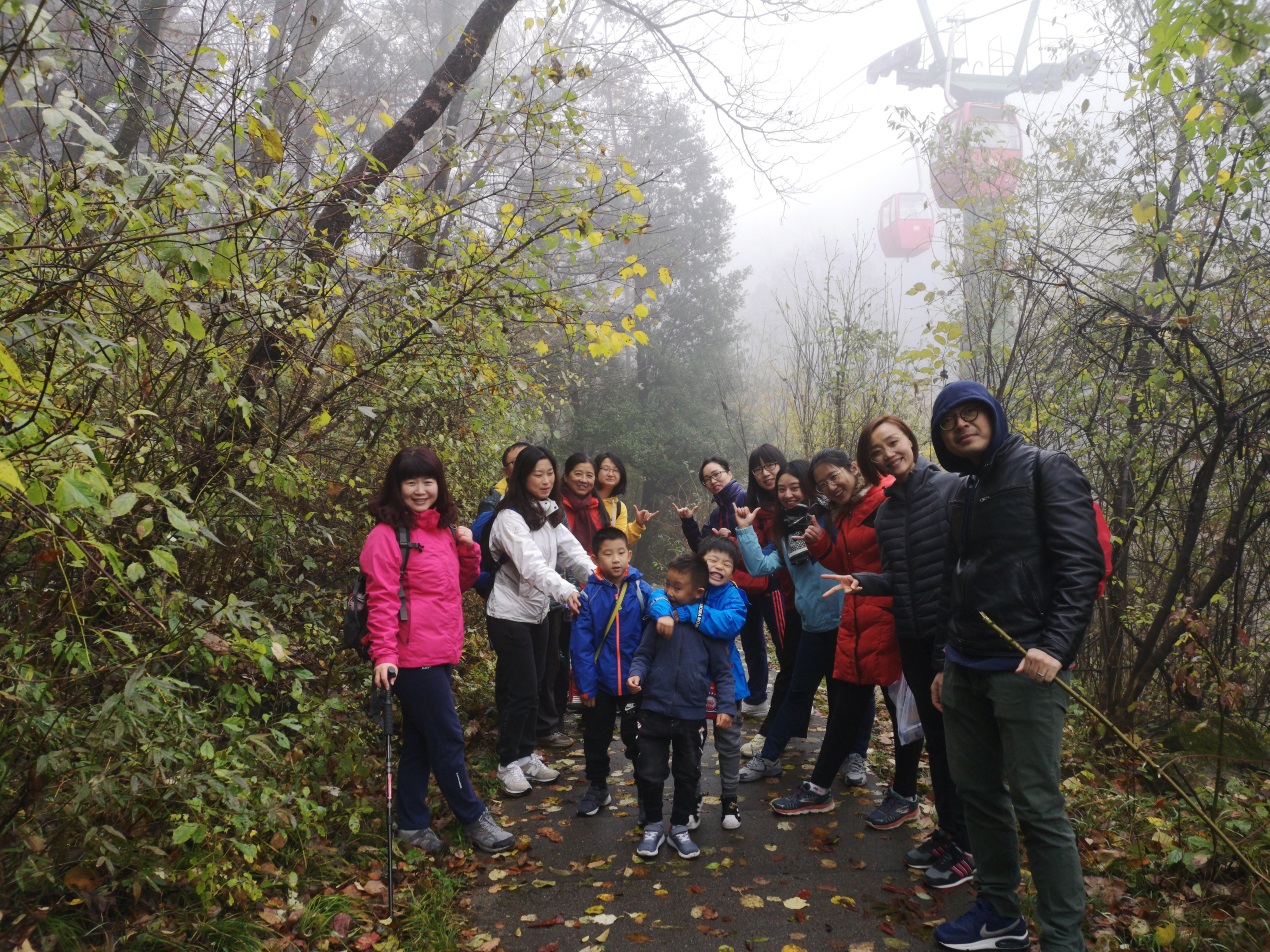 10月20日清晨,公司三十余名教职工乘车前往朱雀森林公园登山。恰昨夜雨疏风骤,今晨寒意未减,依然抵挡不住老师们登山的高涨热情。初时晨露未晞,山脚薄雾未散,老师们三五成群先后上山,途经双潭瀑布、挂天飞瀑,空蒙若见,别有韵味。行至索道山腰,虚谷怀翠,霜露抱苍。越阶而上,长空栈道,云雾缭绕。眼前的醉仙峰已是凌云矗立,层石叠嶂。恰微风幽敞,云播日现,此时犹可见远处冰晶顶皑皑耸立,近前若竹渐黄,老松遒劲。复行三刻,穿入封仙台,越过乱石海,将至高山草甸,一片苍茫了然与前,瞬间游目骋怀,感自然之鬼斧,神行于天地间。
