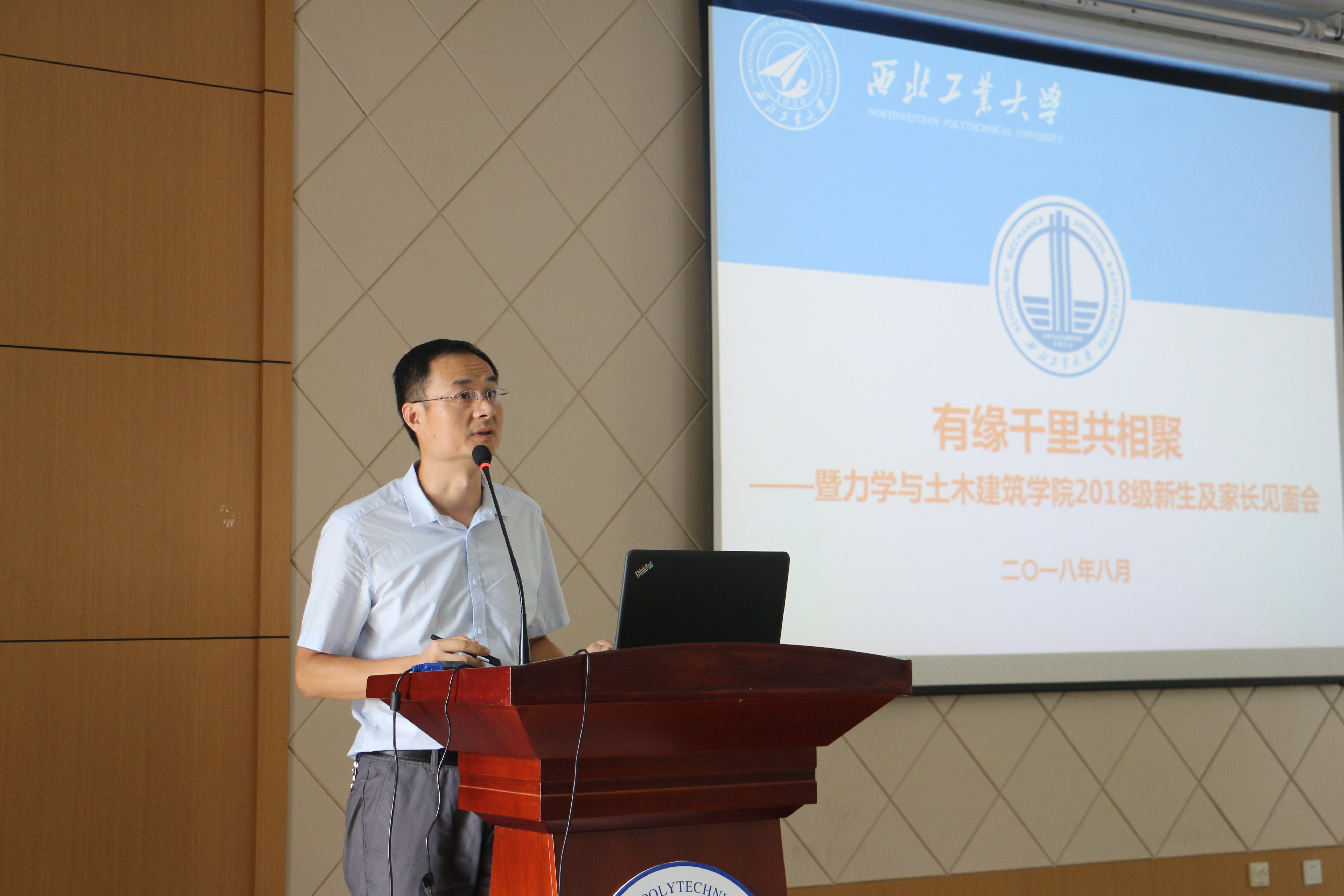 首先,由力学与土木建筑公司副经理王少华老师向2018级新生与家长介绍公司的整体情况,王经理从公司构架、团队队伍、学科构建、人才培养、国际合作与交流等方面详细地讲述了公司概况、发展历史、以及公司未来发展规划等情况,凸显了力学与土木建筑公司的特色。