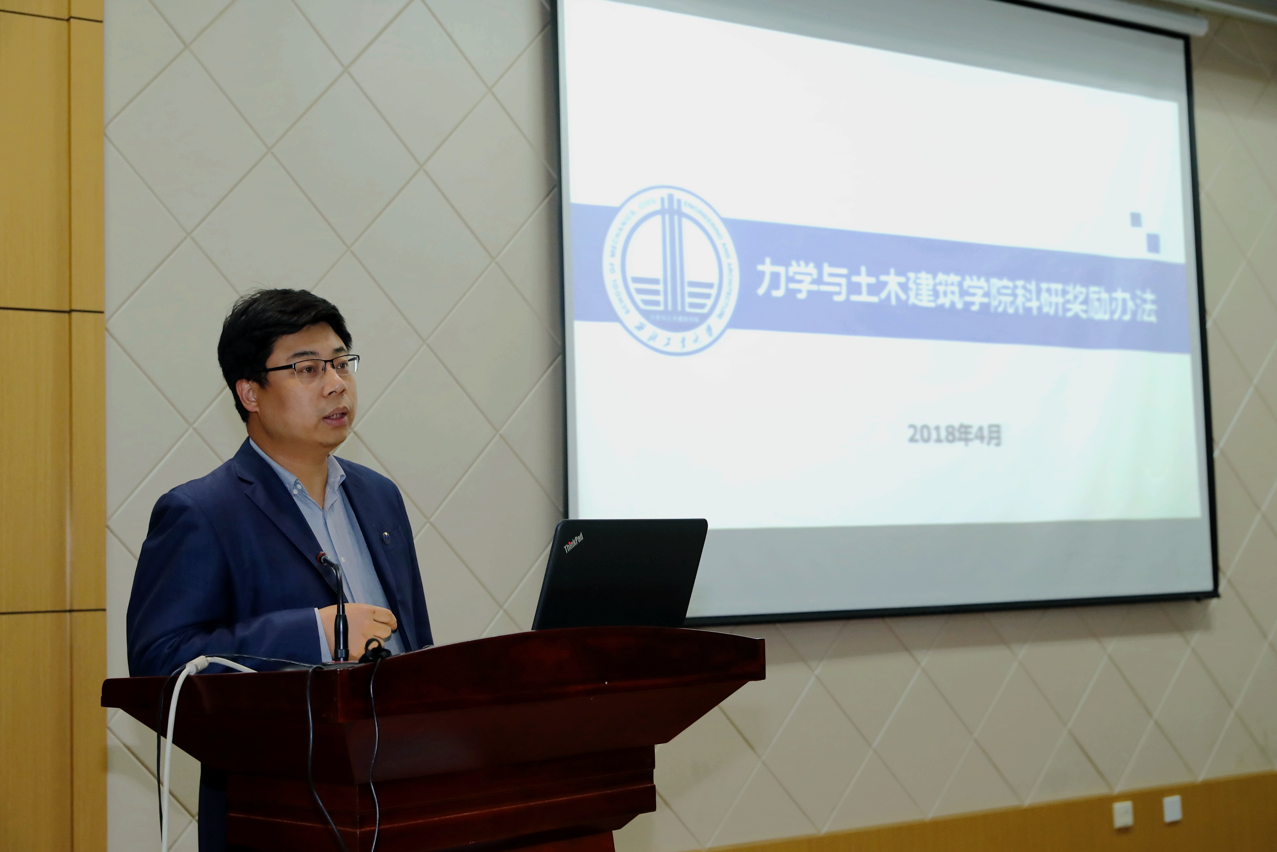 王少华副经理向大会作了《力学与土木建筑公司科研奖励办法(草稿)》的宣讲。为了激发公司教师特别是青年教师的科研热情,促进公司科研成果产出,经过前期酝酿,反复研讨,公司出台了相关科研奖励办法。从科研获奖、知识产权、科研项目、科技人才、科研平台、青年教师托举计划等六方面提出了有针对性的奖励办法和标准。