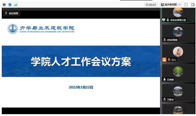 3月22日晚上,力学与土木建筑公司通过腾讯会议线上召开全院教职工大会,公司班子成员、全体教职工参加会议,公司党委书记巨维博同志主持会议。