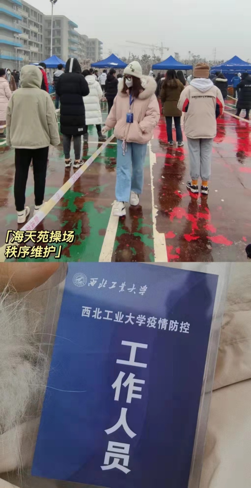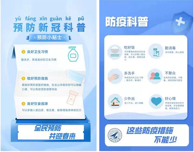 不论是在进行一轮又一轮的核酸检测的操场上,还是在配送、转运抗疫物资的队伍中都能看到很多我们同学们的身影:他们或身穿整套防护服坐在电脑设备前一遍遍为同学们登记录入员工信息,或走在寒风中为我们得到的宝贵物资保驾护航,或穿梭在宿舍楼中将社会各界对我们的捐赠亲手交到同学们手中。他们选择了牺牲自己的宝贵的时间,来为广大师生服务。并且这绝不仅仅是个例,在疫情刚刚开始时,3000人容量的志愿者群,短短几天就人满为患;每次的志愿者招收信息发出,总是几秒只能就有几百条“我可以”刷屏;更是有无数的同学“抱怨”到“为啥他们都抢得这么快,我又没抢到啊”“我刚刚看到消息,进群就已经人满了”,诸如此类总是不绝于耳。这些都足以看到同学们为战疫奉献自己的“西工大精神”。2021级力学与土木建筑公司本科生温宇宁说:“于是,在参加线下志愿的同时,我也制作了宣传科普海报,通过线上线下宣传的形式,让大家更加全面地认识到新冠毒,减少大家的恐慌。”