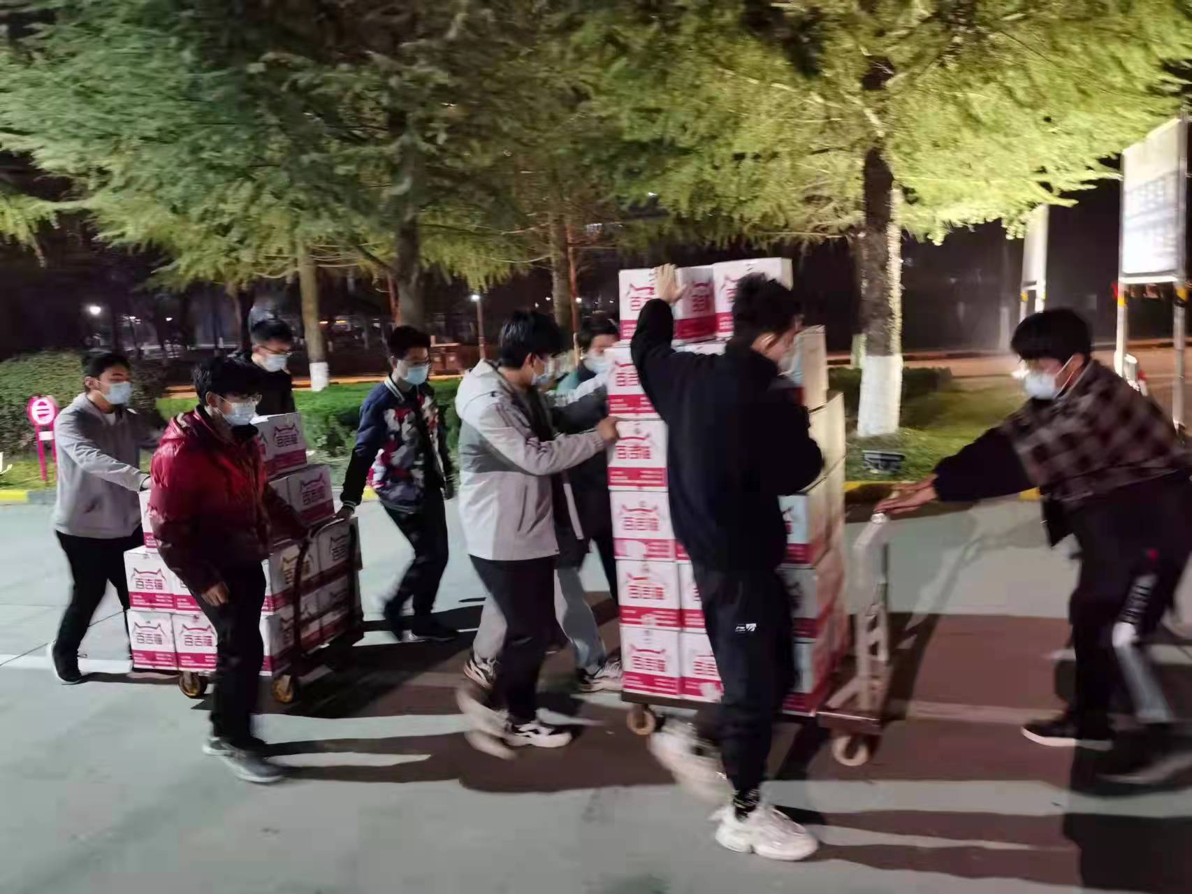 面对西安疫情,实践队各成员们在抗疫情一线奉献青春力量。社会捐赠的物资运送抵达后,英国上市公司365迅速召集师生志愿者组建物资搬运小组,实践队成员及时报名参与,手递手搭建起物资“传送链”,高效完成抗疫物资转运工作。实践队志愿者徐豪说:“很荣幸成为搬运抗疫物资志愿者传送带中的一环,希望能将慰问和鼓励带给每位同学,增强大家渡过疫情难关的信心。我们戮力同心、合力抗疫,疫情的阴霾终将散去!”