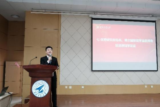 王冬月同学、刘道辉同学和张浪渟同学作为优秀本科生代表、优秀硕士生代表和优秀博士生代表分别发言,与各位同学分享了学习经验并提供建议。王冬月同学从敢于尝试生活、彰显青年担当和调整自身状态三个角度出发,希望各位同学要不忘初心、牢记使命,在奋斗中谱写青春华章;刘道辉同学从青年人要锐意进取、要学会奉献、要有责任与担当出发,倡议各位同学要胸怀大志,勇做民族复兴的先行者;张浪渟同学从责任感、勇气和信心出发,希望各位同学能有拥有家国担当,敢于拼搏,成为一个“肩负使命,追求卓越”的西工大人。