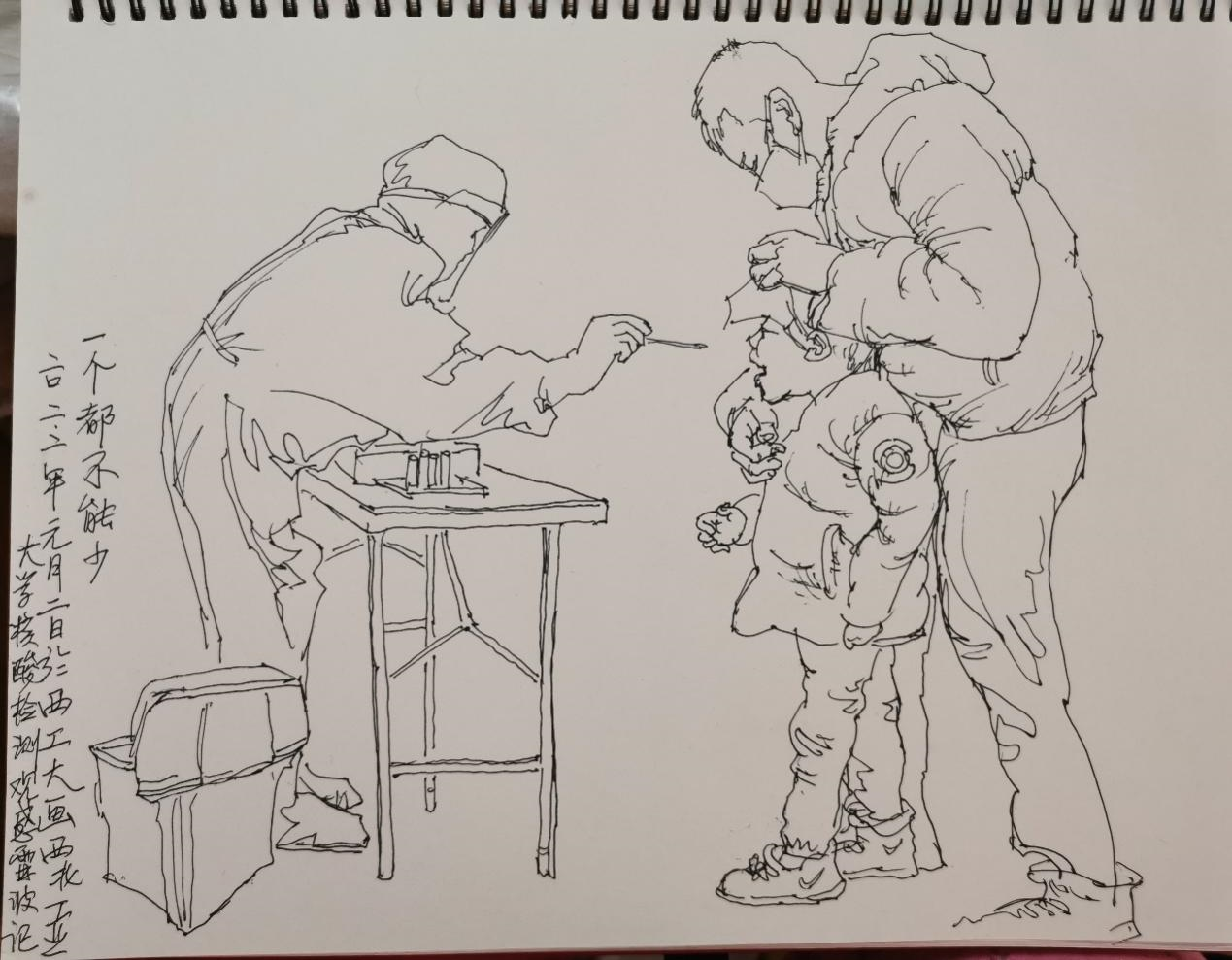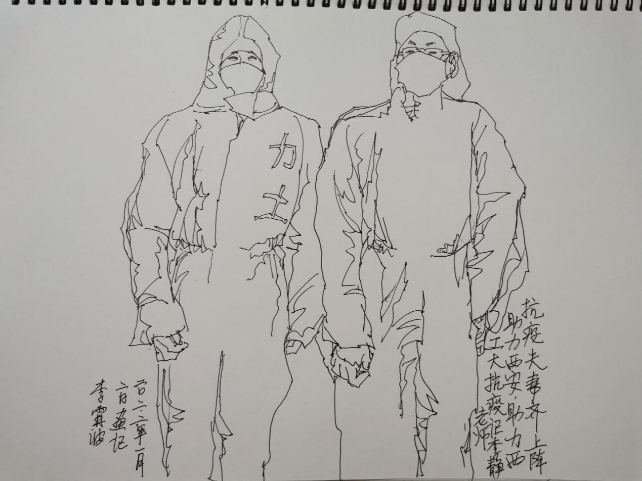 近日西安疫情形势严峻,力学与土木建筑公司全体教职工积极响应号召,在本职岗位为疫情防控做出自己的贡献。公司著名画家李霖波老师用自己的画笔为抗疫一线的医务工作者和志愿者们勾勒出一幅幅动人的画像。