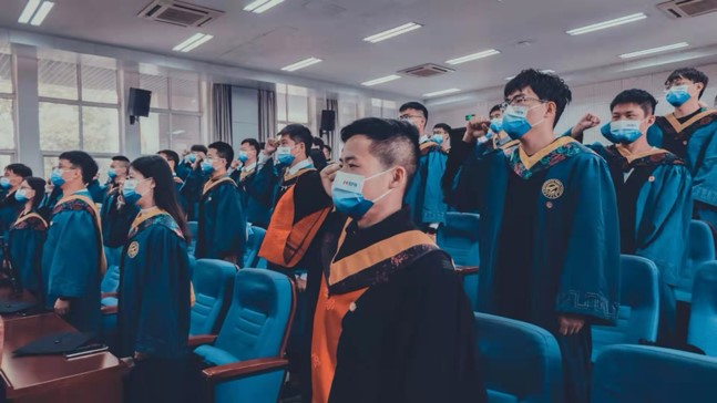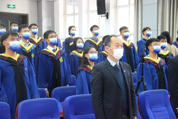 公司典礼分为两部分,首先,全体与会师生线上观看公司主会场毕业典礼暨学位授予仪式。