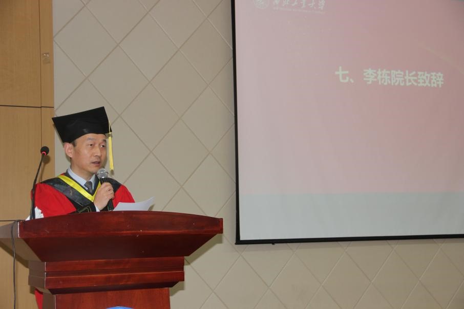 经理李栋教授为毕业生致辞,他希望同学们爱岗敬业,踏实工作,勤勤恳恳,历练心志,在平凡的工作岗位上建功立业。希望同学们勤于学习,勇于实践,不断提高自身素质,努力成才,继续关心公司的建设和发展,为公司更加美好的明天献计献策。同时,他希望同学们走出校门后也能:学无止境,永葆创新求知之欲望;坚定信念,养成勤奋刻苦之习惯;志存高远,恪守为国为民之情怀。最后,他希望同学们在新的征程上带着对知识的渴望,对理想的坚持,对责任的担当,去开拓美好而精彩的未来,谨记秉承“公诚勇毅”校训,弘扬“三实一新”校风,携手共为祖国更加美好的明天,为母校、公司更加灿烂的未来而努力奋斗!