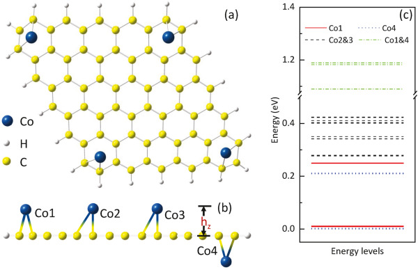 在这项工作中,作者以菱形石墨烯纳米片层(GNFs)为基础,通过π共轭掺杂方式引入四个Co原子,构建了多磁性中心的Co4-GNF结构。该结构的主要优点在于:石墨烯纳米片层独特的六元碳环结构可以为外加的磁性原子提供掺杂位点,使得磁性原子可以在六元碳环的中心上方稳定存在。这种掺杂方式具有可扩展性,随着GNFs结构的扩展,可以引入更多磁性中心,为后续大体系、多磁性中心的自旋量子逻辑功能器件的设计提供可能性。