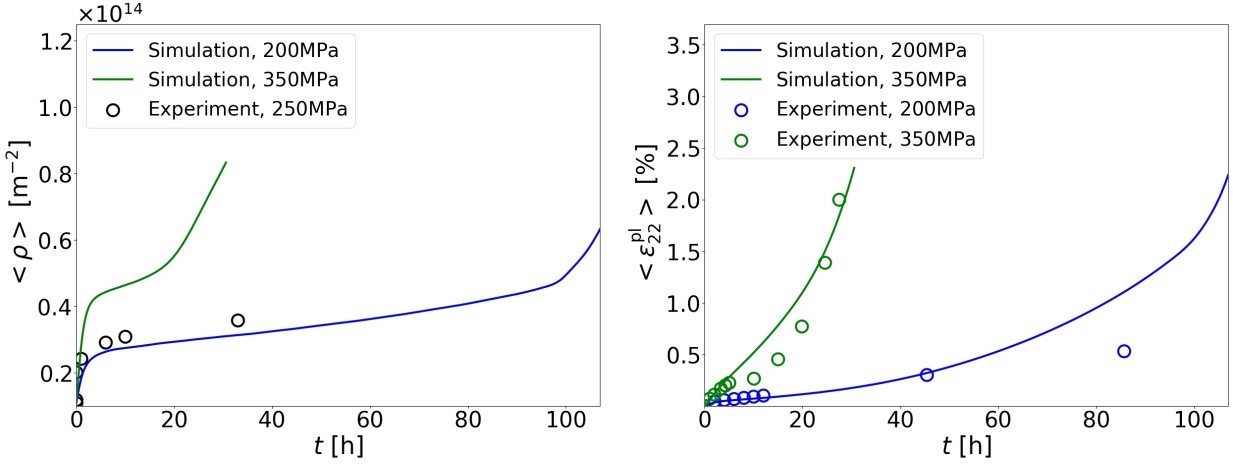 图2 (a)平均位错密度演变;(b)蠕变曲线