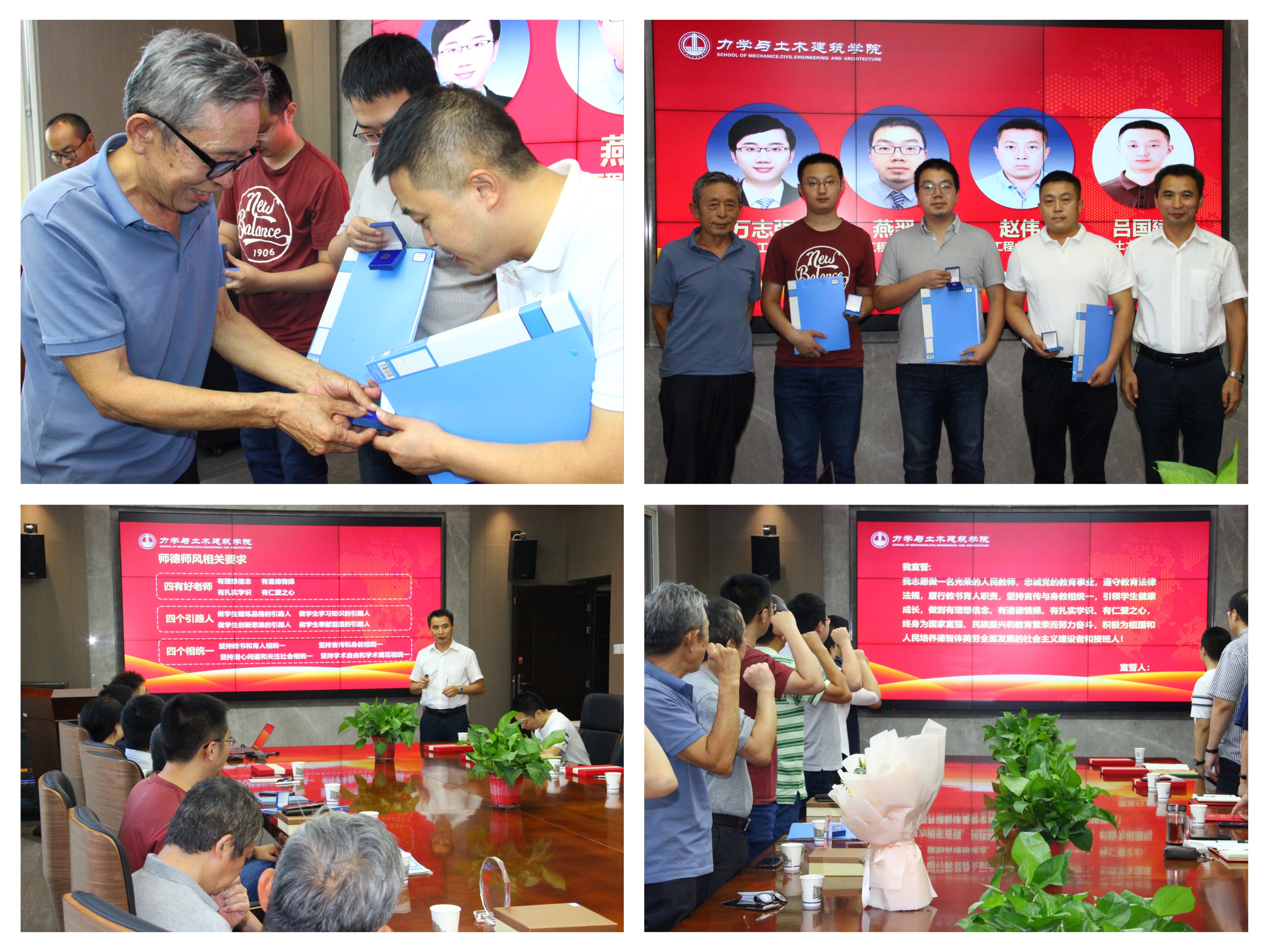 接下来,公司为新进教师举行了入职仪式,通过为新进教师颁发任务书,由公司退休教师代表闫云聚老师为新进教师佩戴代表传承的院徽,与新进教师签订师德师风责任书,开展新进教师入职宣誓,进一步强化青年教师责任担当,持续加强公司师德师风建设。闫云聚老师鼓励新进教师要勇担教书育人的使命,肩负起高校教师的责任与义务,持续不断精益求精,为国家培养人才努力奋斗。青年教师表示将不负公司和教育前辈们的重托,努力提升自身教学科研实力,以立德树人为己任,坚持“四个相统一”,成为“四有好老师”,争做员工成长成才路上的“四个引路人”。巨维博书记还围绕《新时代高校教师职业行为十项准则》《高校教师师德禁行行为“红七条”》和师德师风警示教育案例等内容进行了专题培训。