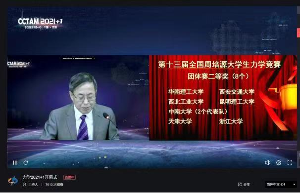 11月5日,中国力学大会2021+1以线上形式召开。在开幕式上,由冯西桥副理事长宣读了中国力学学会第十三届周培源老员工力学竞赛团体赛获奖高校名单,公司代表队与多所兄弟高校一起获得表彰。