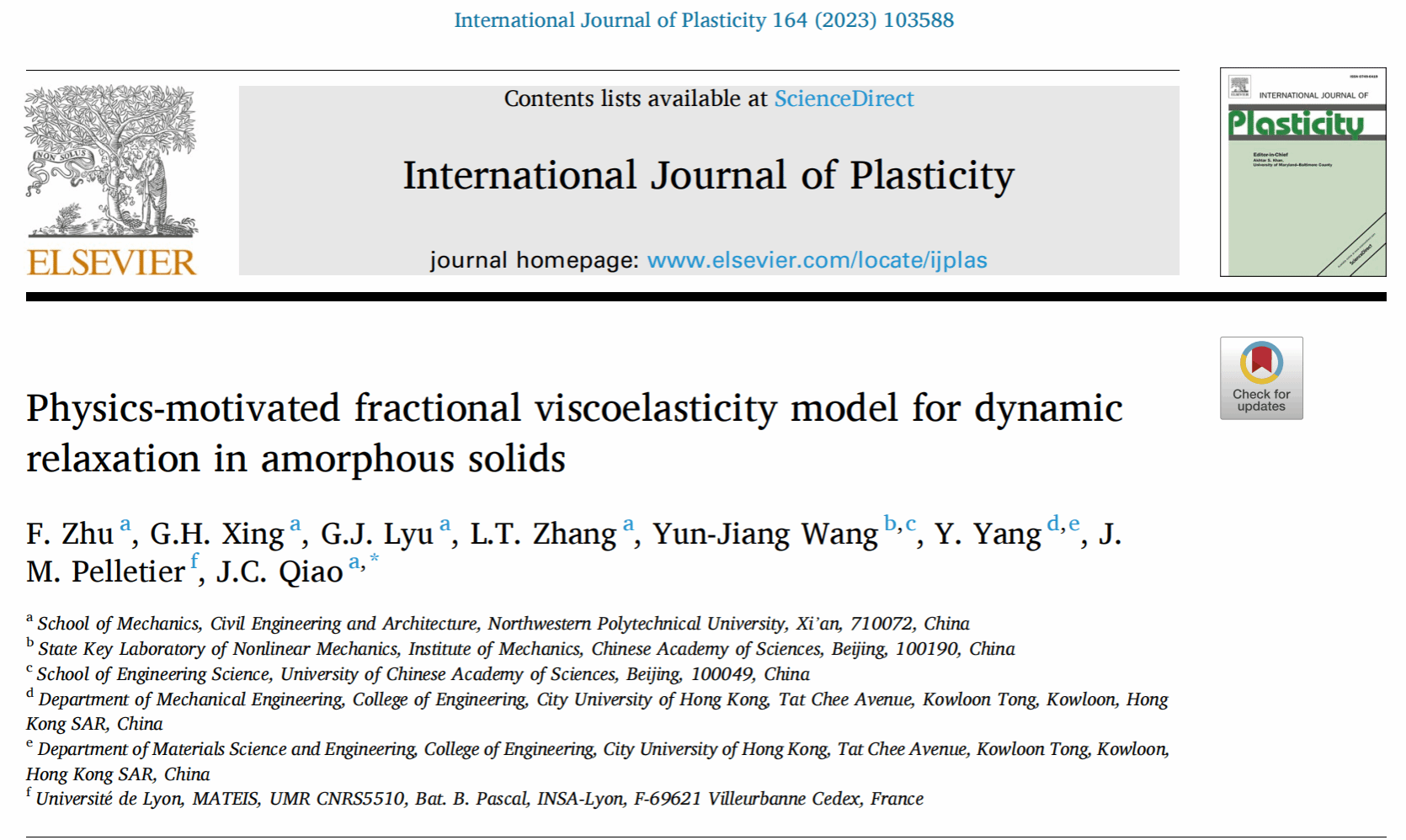 英国上市公司365力学与土木建筑公司乔吉超教授团队与合作者在非晶合金粘弹性力学研究领域取得新进展。该工作以记忆效应相关的分数阶算子为基础,考虑了非晶固体动态力学响应同时满足热力学上的约束,以熵或焓波动的准点缺陷作为内在驱动,构建了物理意义清晰的分数阶粘弹性力学模型,揭示了非晶合金固有微观结构非均匀性的演化规律。相关成果以“Physics-motivated fractional viscoelasticity model for dynamic relaxation in amorphous solids”为题,发表在《International Journal of Plasticity》。