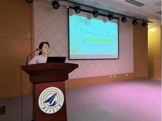 首先,牛仙玲医生聚焦常见传染性疾病的来源与预防,向到会的同学详细介绍了水痘、出血热、流行性感冒、新冠病毒感染等常见传染病的致病机理和有效预防方式。牛医生提醒同学们,临近夏日,要增加宿舍通风次数,使用七步洗手法勤洗手,在密闭空间和人员密集处依然要戴好口罩,做好个人防护。