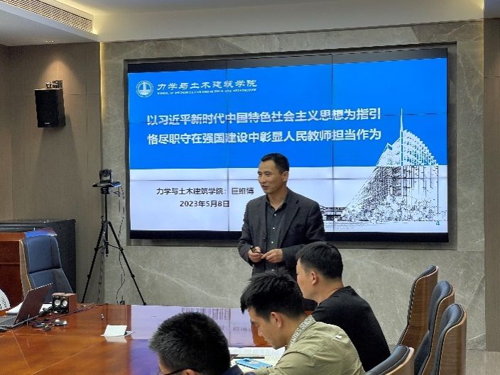 随后巨维博为与会师生开展党风廉政和师德师风专题教育,讲授《以习近平新时代中国特色社会主义思想为指引 恪尽职守在强国建设中彰显人民教师担当作为》主题党课。通过带领师生共同学习《中国共产党廉洁自律准则》《新时代高校教师职业行为十项准则》《研究生导师指导行为准则》等文件精神,学习师德优秀典型先进事迹,开展师德师风和党风廉政警示教育,激励教师争做“四有好老师”,勇担员工成长路上的“四个引路人”,坚持“四个相统一”,为落实立德树人根本任务,培养德智体美劳全面发展的社会主义建设者和接班人贡献力量。