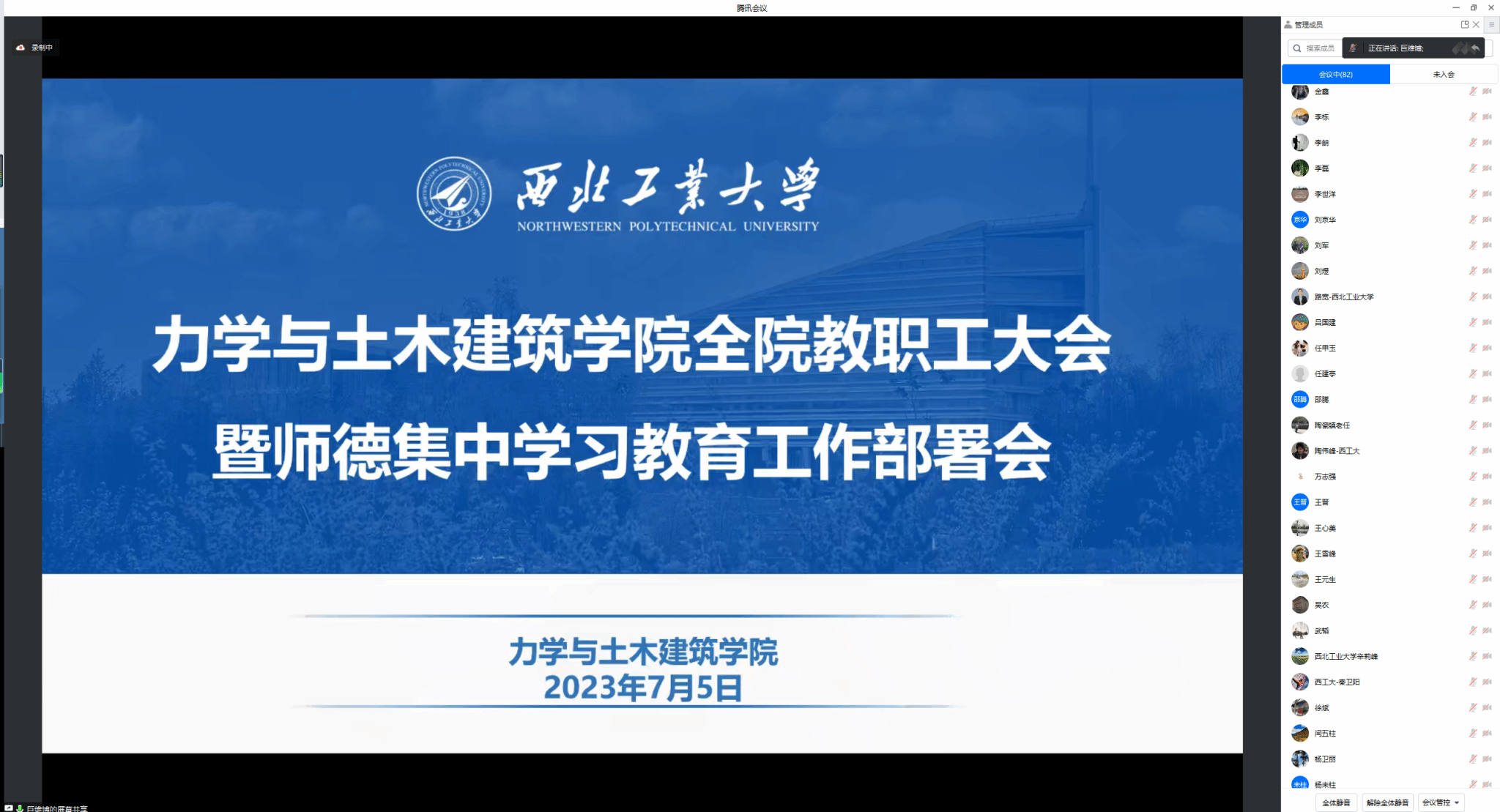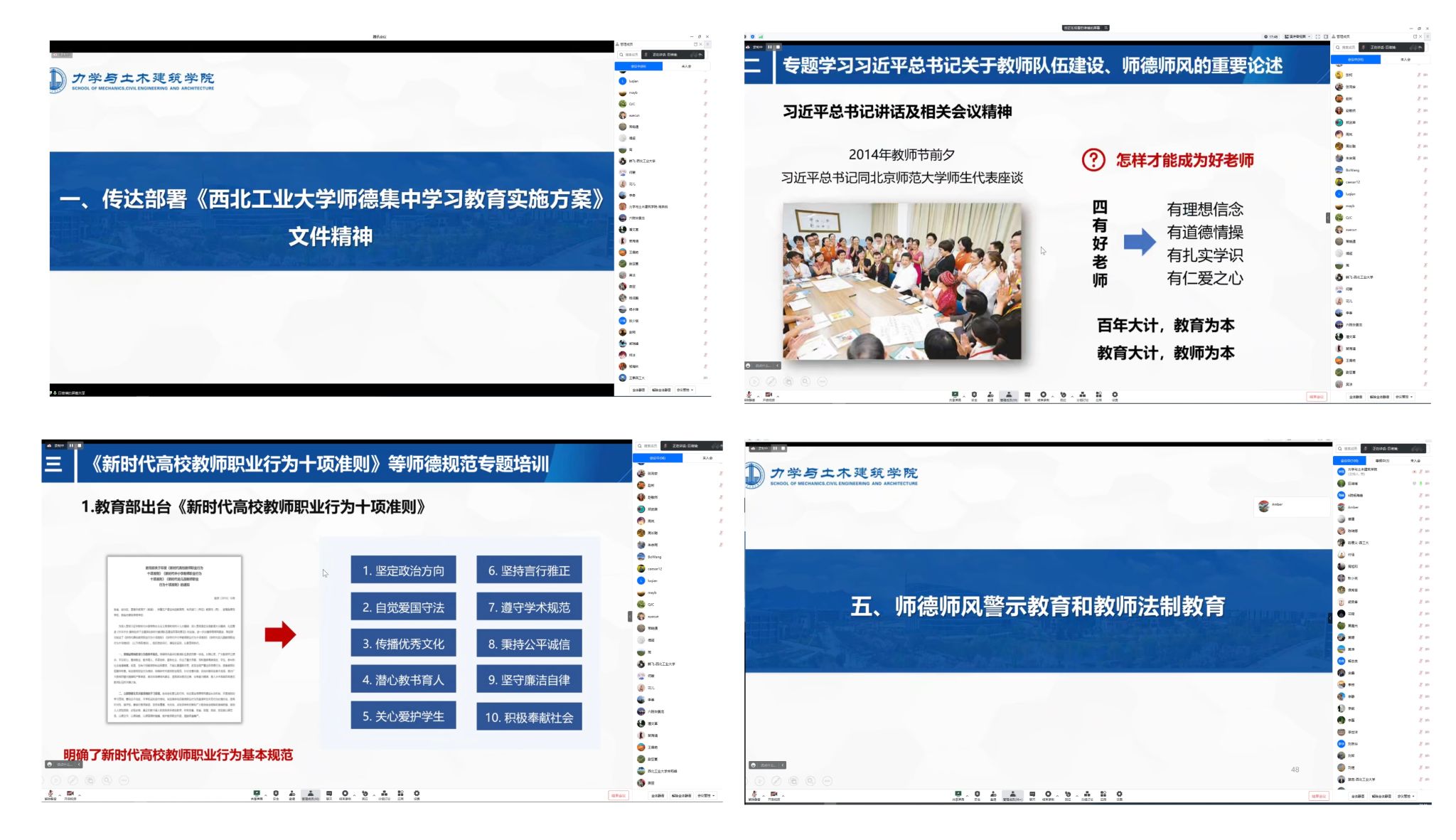 为贯彻落实《关于在全校开展师德集中学习教育的通知》要求,准确把握师德师风建设工作面临的新形势新要求,压实公司师德师风建设主体责任,营造风清气正、积极向上的育人环境,7月5日晚,力学与土木建筑公司通过腾讯会议组织召开全院教职工大会暨师德集中学习教育工作部署会,并开展师德规范和师德警示教育,公司全体教职工参加会议,会议由公司党委书记巨维博主持。