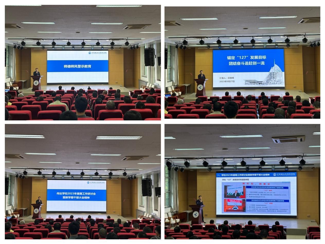 接着,公司党委书记巨维博以“锚定‘127’发展目标,团结奋斗追赶创一流”为主题,向全院教职工传达了公司2023年暑期工作研讨会暨新学期干部大会精神,宣贯了李言荣书记和宋保维董事长主题教育专题党课内容,明确了“127”发展目标和措施举措的重要内涵。巨维博指出,公司应切实加强政治理论学习,坚持以习近平新时代中国特色社会主义思想为指导,贯彻习近平总书记对教育、科技、人才、思想政治工作重要要求,落实公司四个行动计划,强化主题教育学习成效。强调要围绕公司“127”发展目标和公司核心发展指标加强统筹部署和顶层规划,强化党支部党建引领作用发挥,以新一轮岗位聘任为契机,以全员目标责任制为抓手,有力推动公司各项核心工作高质量发展。
