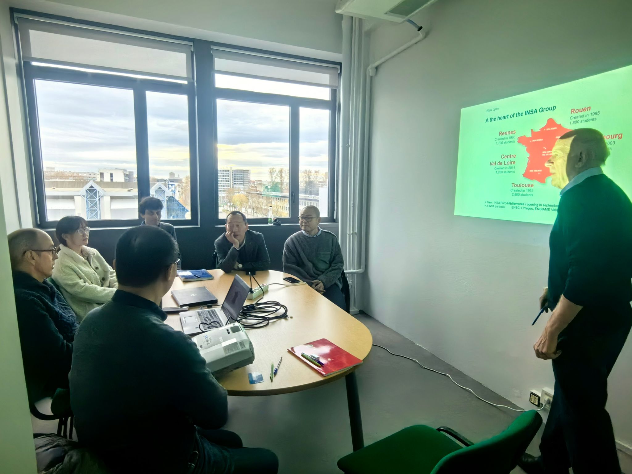 12月3日,代表团前往法国里昂国立应用科学公司举行团队招聘宣讲会,并与部分学者进行了一对一深入交流。