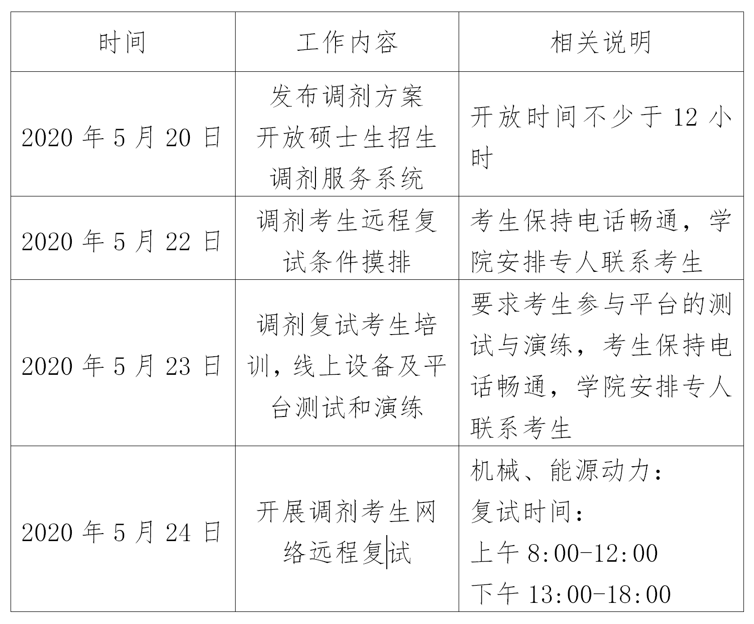 符合调剂要求的考生请在2020年5月20日20:00-2020年5月21日8:00期间登录“全国硕士生招生调剂服务系统”报名,同时提交公司要求的材料(一志愿上院线考生院内调剂可不提供),未发送材料或未在调剂服务系统中报名均视为报名无效。